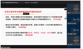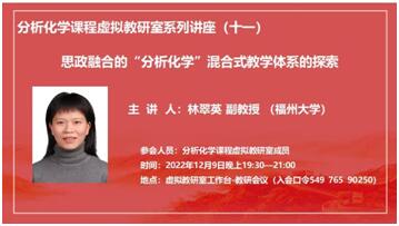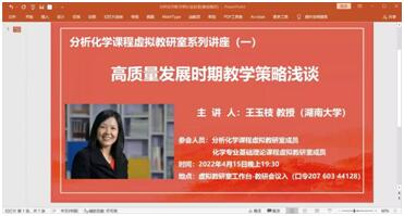 基层教学组织是高等学校立德树人、落实教学任务、开展教研活动、推进教学改革、促进教师教学发展的基本教学单元。分析化学课程校内理工专业全覆盖,《分析化学教研室》探索“智能+”时代新型基层教学组织的建设,创新教研形态,充分运用信息技术,探索突破时空限制、跨校、跨地域的教研交流,获学校首批虚拟教研室建设立项,该教研室同时为教育部首批虚拟教研室建设试点---湖南大学分析化学课程虚拟教研室的主要成员单位之一。依托两个虚拟教研室平台开展针对能力提升的教学活动,内容包括教学研讨会、教学观摩、学生课程质量分析、系列学术讲座。教学研讨主要针对教学理念、教学要求、教学方法和教育信息技术等内容展,邀请校外专家分享和交流高校教师教学创新大赛的参赛经验和体会。以此进一步落实立德树人根本任务,助力课程建设,推动信息技术与教育教学融合创新发展。