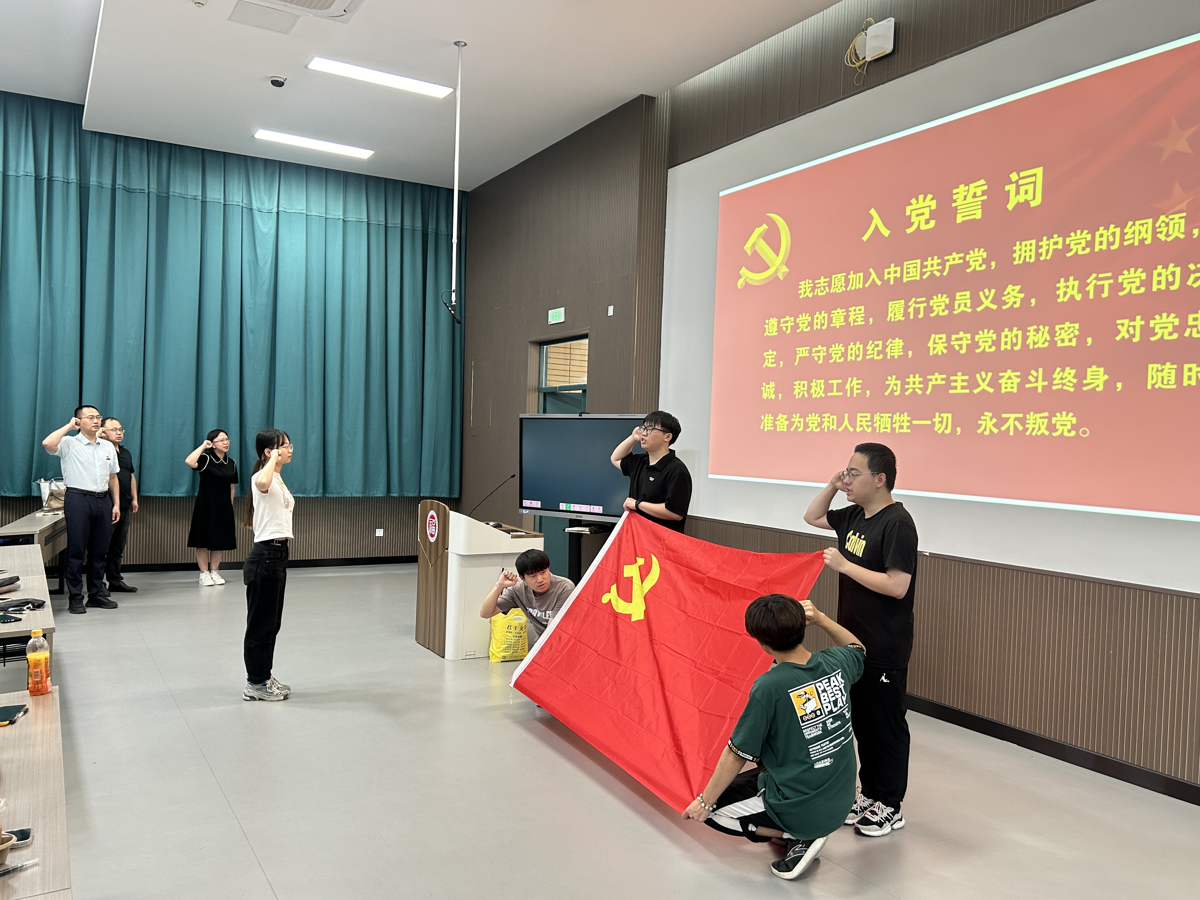 随后,毕业生党员代表江倍珊带领全体毕业生党员重温入党誓词,党员们高举右拳,面向党旗庄严宣誓,在铮铮誓言中回望入党初心,坚定理想信念,铿锵豪迈的声音彰显着每一位毕业生党员奔赴远方的使命和担当。