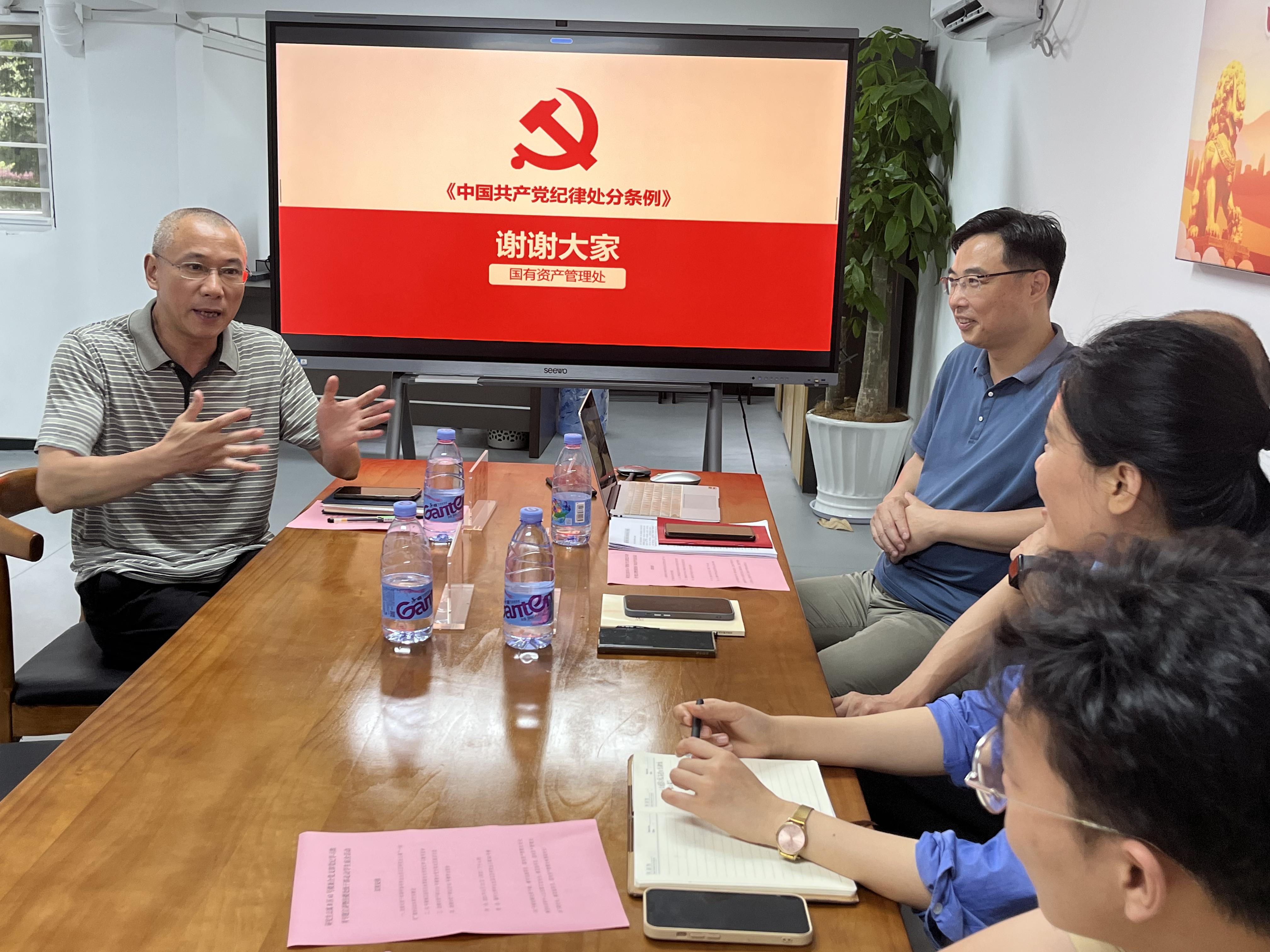 为扎实开展党纪学习教育,增强学生党员政治自觉、思想自觉、行动自觉,以党建引领提升“一站式”学生社区育人成效,6月13日下午,研究生公寓B区61号楼兼合党支部于“一站式”健身活动共享空间党团活动室开展党纪学习教育专题宣讲暨挂联处级干部走访学生宿舍活动。61号楼楼宇总指导员、国有资产管理处处长兼招标采购中心主任雷石宝处长,楼层指导员、国有资产管理处余飞副处长,楼层指导员、国有资产管理处林勇副处长,木瓜视频