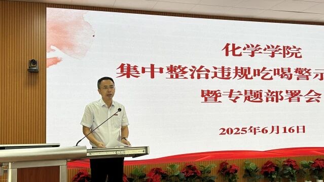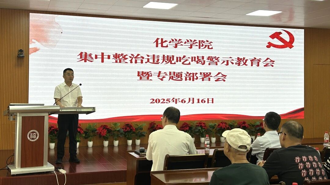在嘉锡楼413会议室召开集中整治违规吃喝警示教育会暨专题部署会。会议围绕深入学习贯彻习近平总书记关于加强党的作风建设的重要论述,通过以案说德、以案说纪、以案说法、以案说责的方式,引导广大党员干部汲取教训、警钟长鸣,持续贯彻中央八项规定精神,以优良作风推动学院各项事业发展。学院党政班子成员、院长助理、处科级干部、教师党支部书记、思政辅导员和机关管理人员等出席会议,会议由院长钟羽武主持。