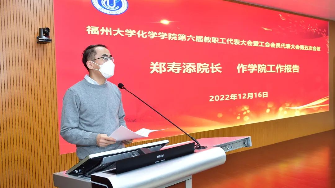 会上,学院院长郑寿添教授作2022年学院工作报告,对学院一年来的工作进行了系统总结。《报告》指出,一年来,全院上下在学校党委的坚强领导下,自觉用“四个意识”引航,“四个自信”强基,“两个维护”铸魂,构建学院“15566”全方位党建工作体系,推进学院党建与事业发展有机融合。按照化学世界一流学科建设总体路径,以学科建设为龙头,以立德树人为教育教学根本任务,以人才队伍建设为抓手,全面建设一流学院,各项工作有序、高效开展,化学学科进入ESI全球前0.445‰,初步实现本轮“双一流”建设目标。