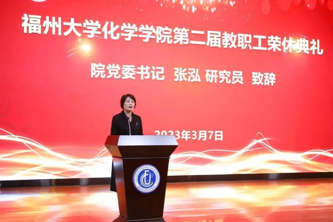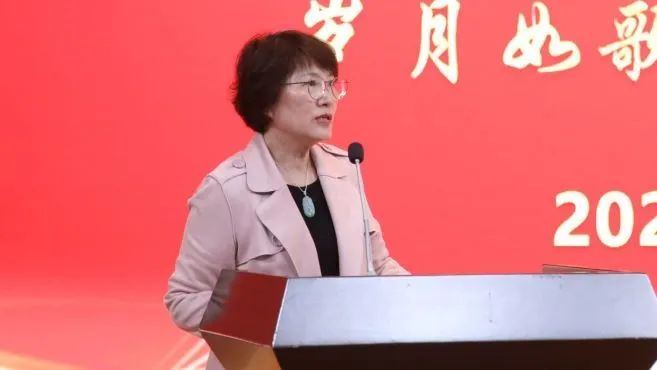 共生共长、血脉情深、桃李满天下的人生历程。院党委张泓书记致辞,她首先代表学院党政班子和全院师生员工向长期以来为学院事业发展作出积极贡献的荣休教师们致以崇高的敬意和衷心的感谢。她回顾了这八位教师的工作情况,并给予高度肯定。张泓书记指出,荣休的8位教职工,他们中有近一半以上在学校工作了40年以上。无论在哪个岗位,他们都用艰苦奋斗的创业精神、严谨求实的治学精神、勇于拼搏的奉献精神,始终与学院同呼吸、共命运、心连心。她希望各位老师常“回家”看看,继续为学院改革和发展建言献策,并衷心祝愿各位荣休教师在未来的人生旅途中身体健康、生活幸福!
