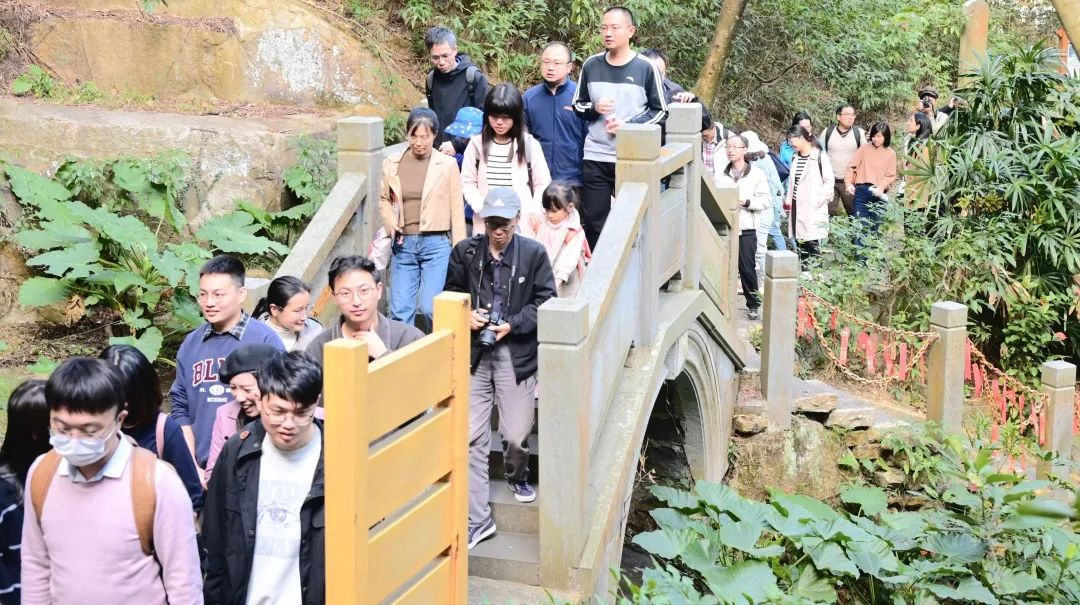 登高远望,赏秋听风。览猴屿洞天岩奇特岩石,穿多样山洞,“状元洞”、“仙人洞”、“蝙蝠洞”,迂回曲折,步步景生。千洞以后,寻光而出,别有洞天,让人不禁感叹大自然的鬼斧神工,一路风光无限,老师们其乐融融。