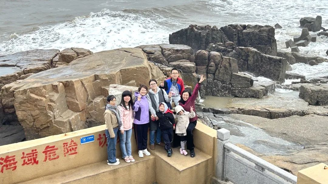 汹涌澎湃的波涛拍打屹立的礁石,泛起雪白的浪花,奏出震撼的轰鸣。在欢声笑语中抵达旅途的最后一站——王母礁,凭栏远眺,听海风歌唱,看海浪奔腾,感受大海的波澜壮阔,在广阔天地间释放倦意。