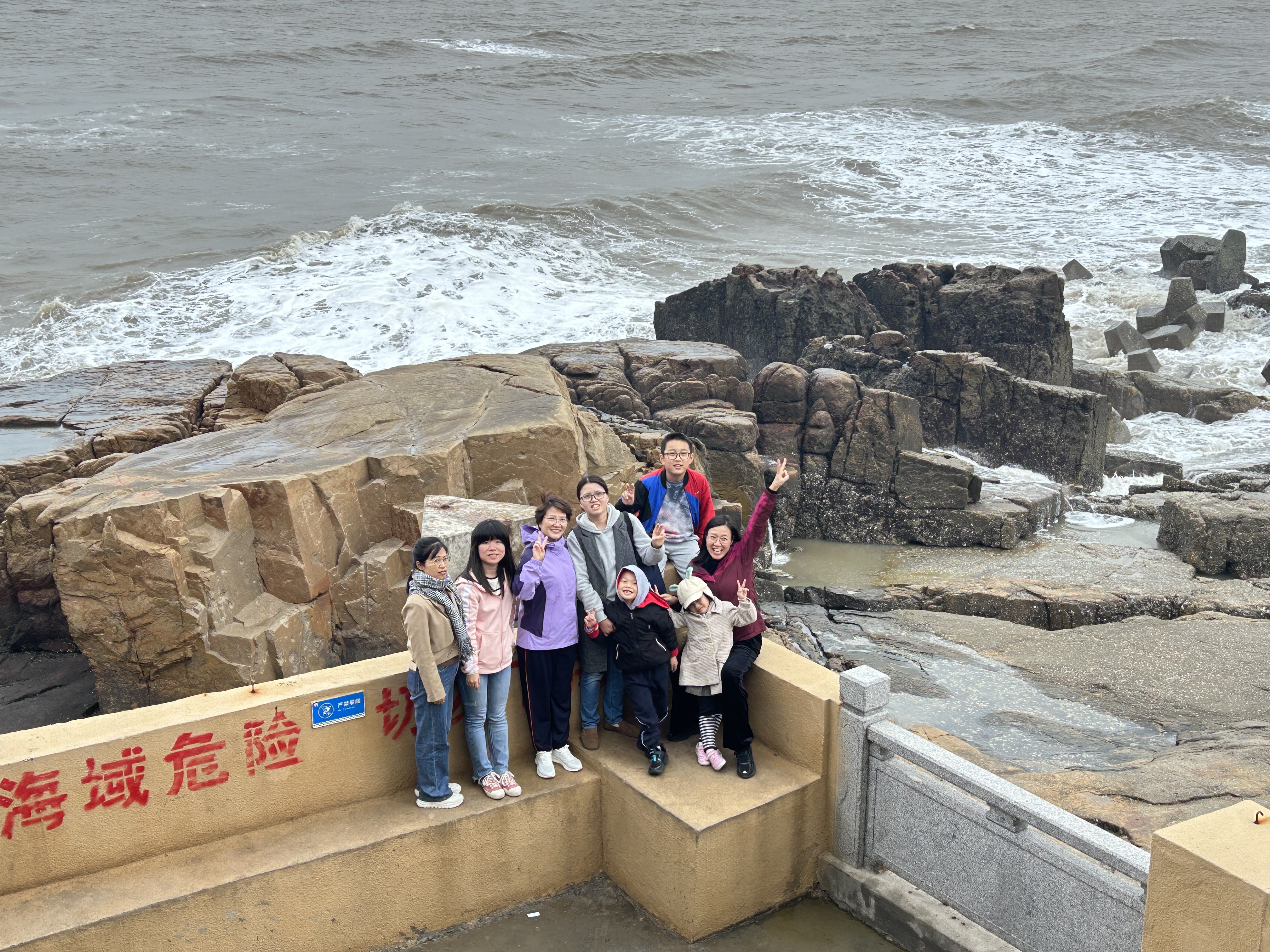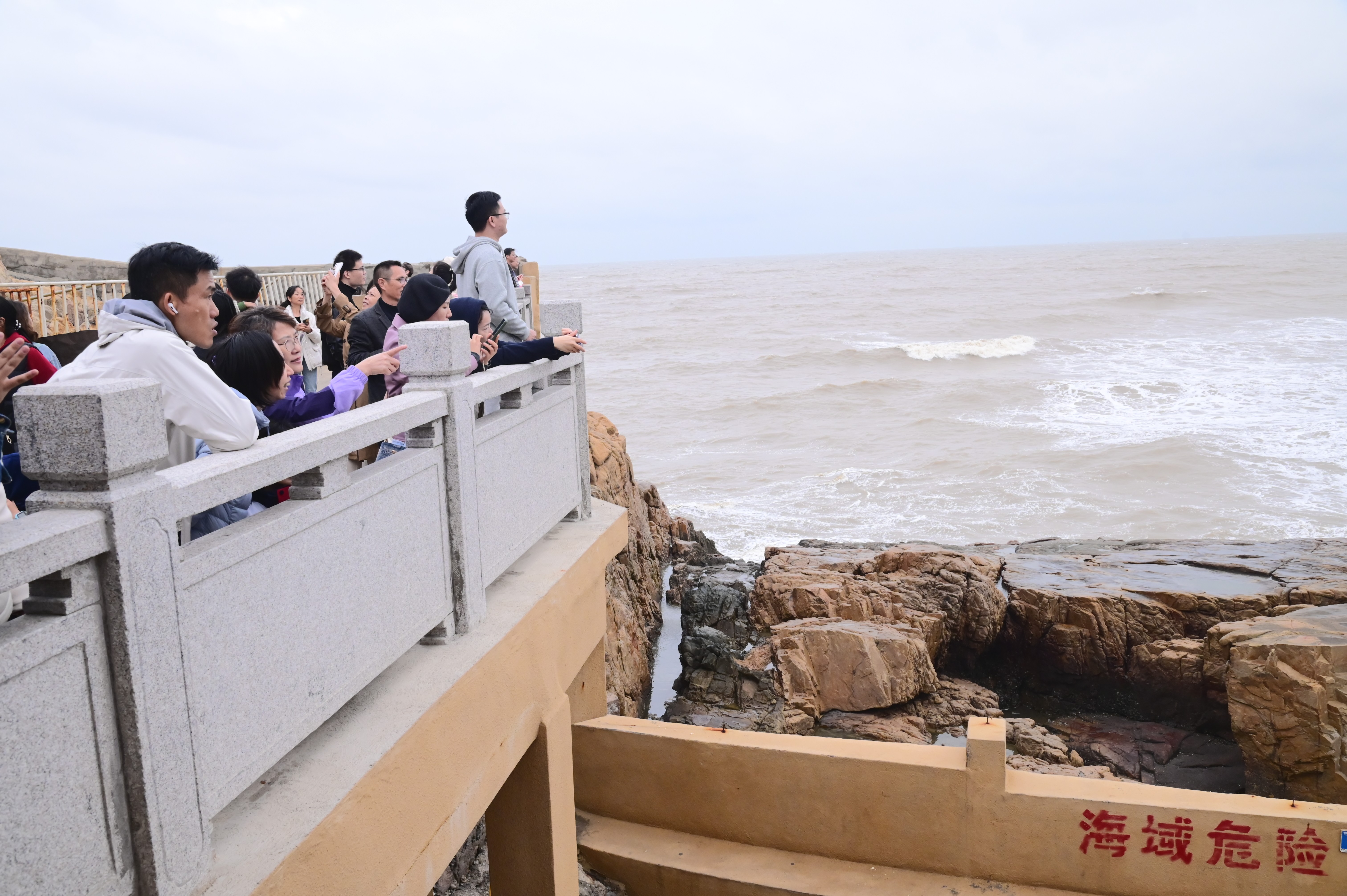 汹涌澎湃的波涛拍打屹立的礁石,泛起雪白的浪花,奏出震撼的轰鸣。在欢声笑语中抵达旅途的最后一站——王母礁,凭栏远眺,听海风歌唱,看海浪奔腾,感受大海的波澜壮阔,在广阔天地间释放倦意。