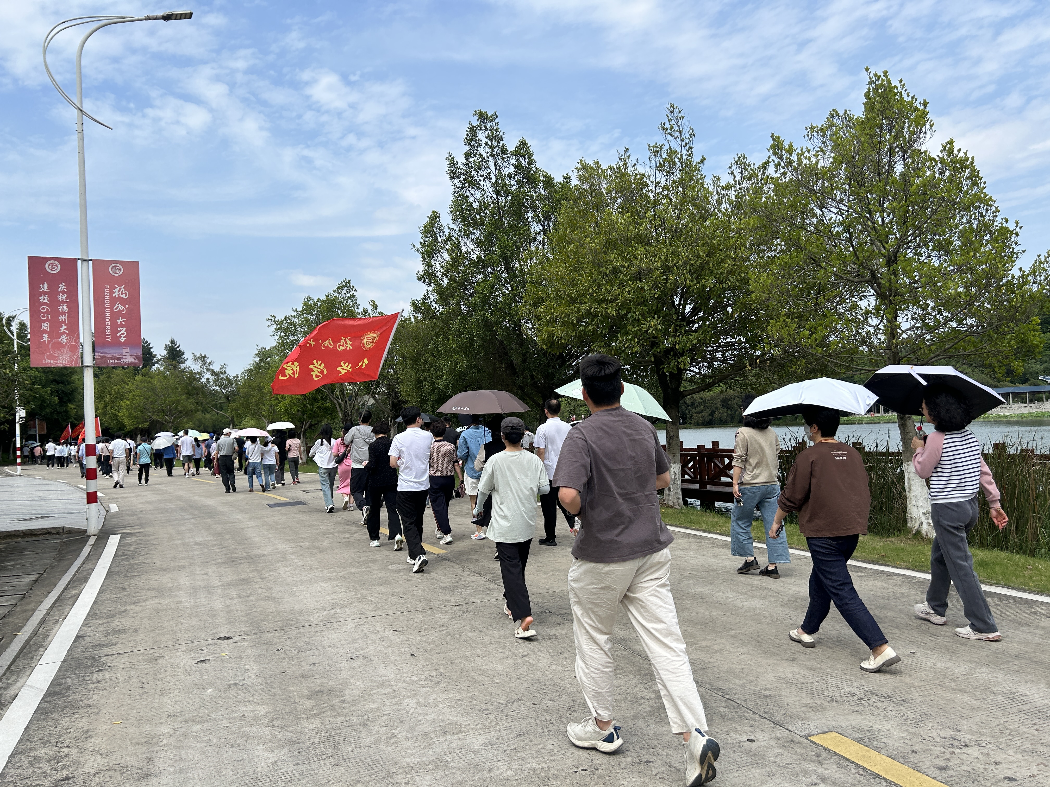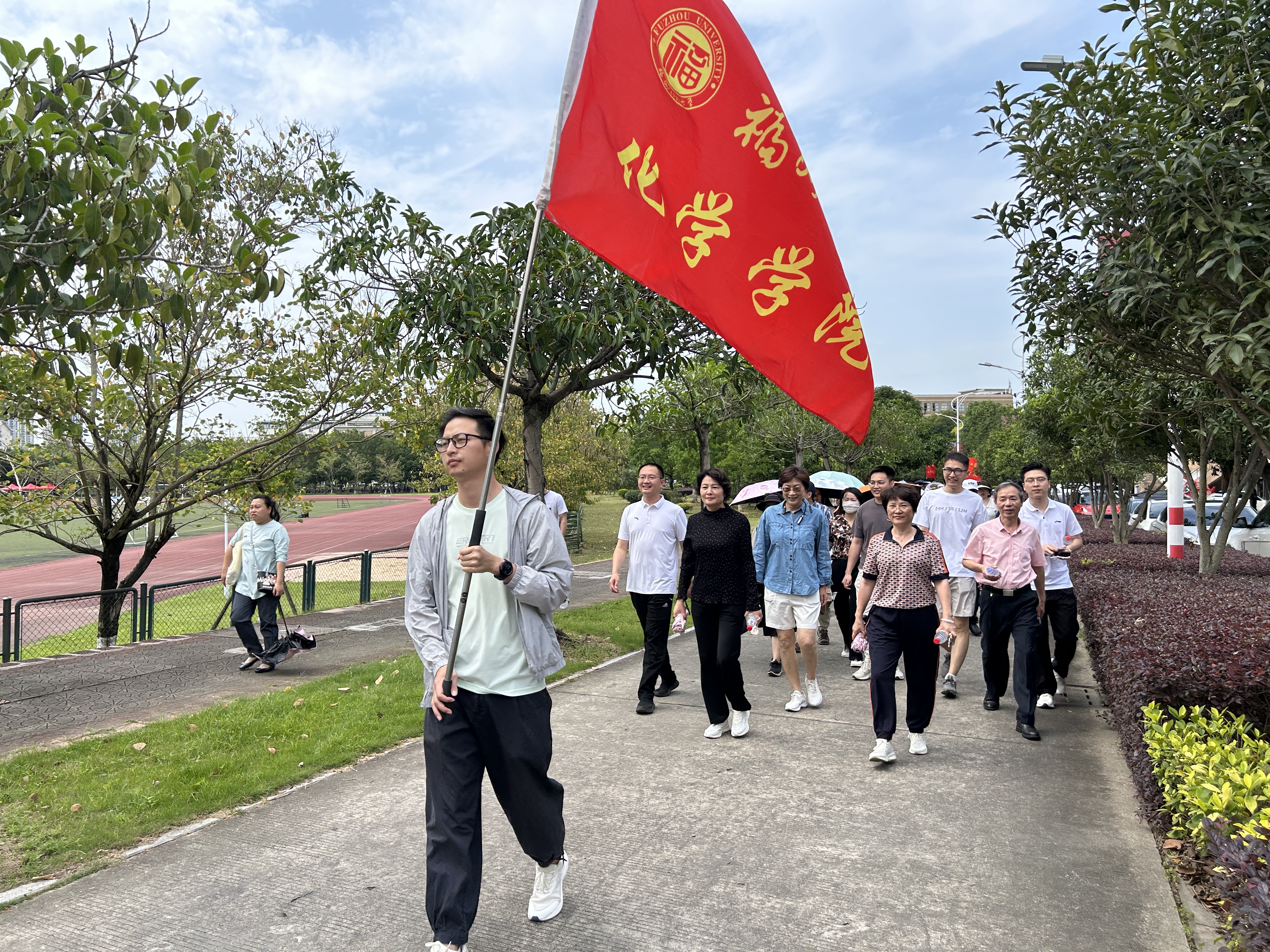 五月,是春末初夏的过渡时节,别开生面的校园健步走活动从下午2点开始,在旗山校区第一田径场拉开序幕。教职工们活力满满,精神抖擞,途经校团委、方境桥、长湾山、行政南楼、火山地质园(梅园)、福友阁、湖边栈道、校友楼、行政北楼、百竹园、雕塑园、同心林等地。微风斜阳,风光正好,老师们三五成群,快步前行,一路欢声笑语,感受着学校的山水生态与日新月异的变化。