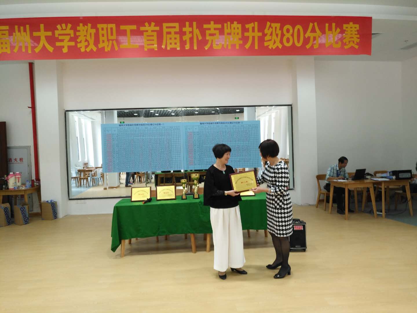 为了丰富教职工业余文化生活,增强团队协作意识,2017年11月11日至12日,木瓜视频 首届扑克牌升级80分团体赛在校教工活动中心一楼圆满举办。木瓜视频 积极组织刘旺、汪健、陈珠灵、余爱萍等四位老师参赛,并经过激烈角逐最终取得了团体总分第八名的好成绩。特此祝贺!
