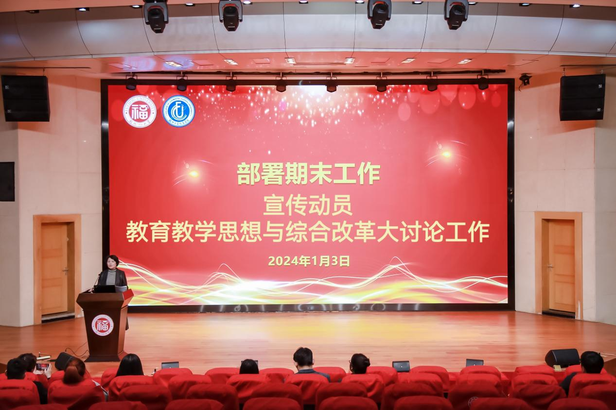 教育教学思想与综合改革大讨论宣传动员工作会议在旗山校区模拟法庭报告厅举行,学院全体教职工参加此次会议。