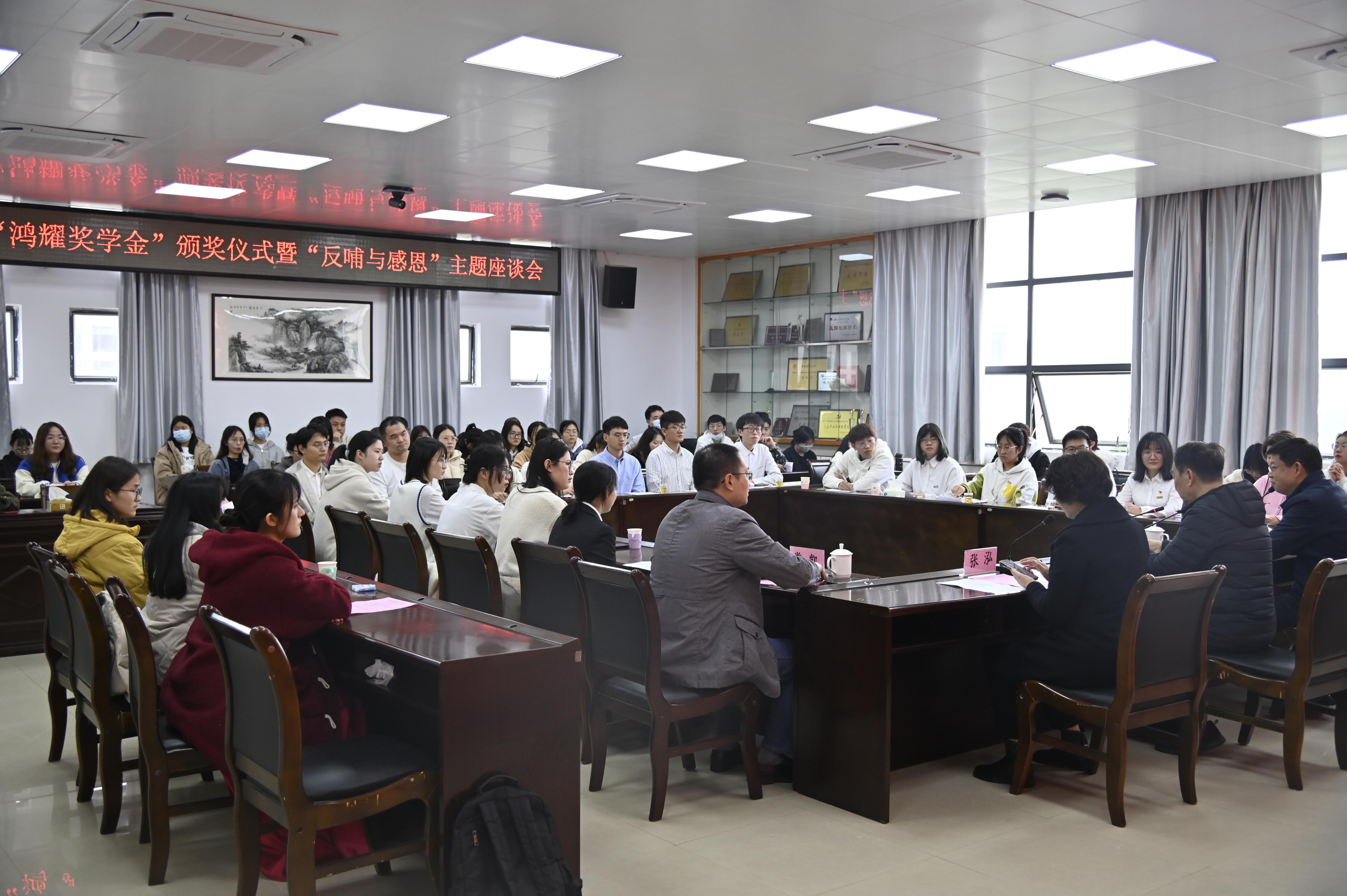 、石化学院于3月29日在嘉锡楼413会议室召开“鸿耀奖学金”颁奖仪式暨“反哺与感恩”主题座谈会。出席座谈会的有木瓜视频