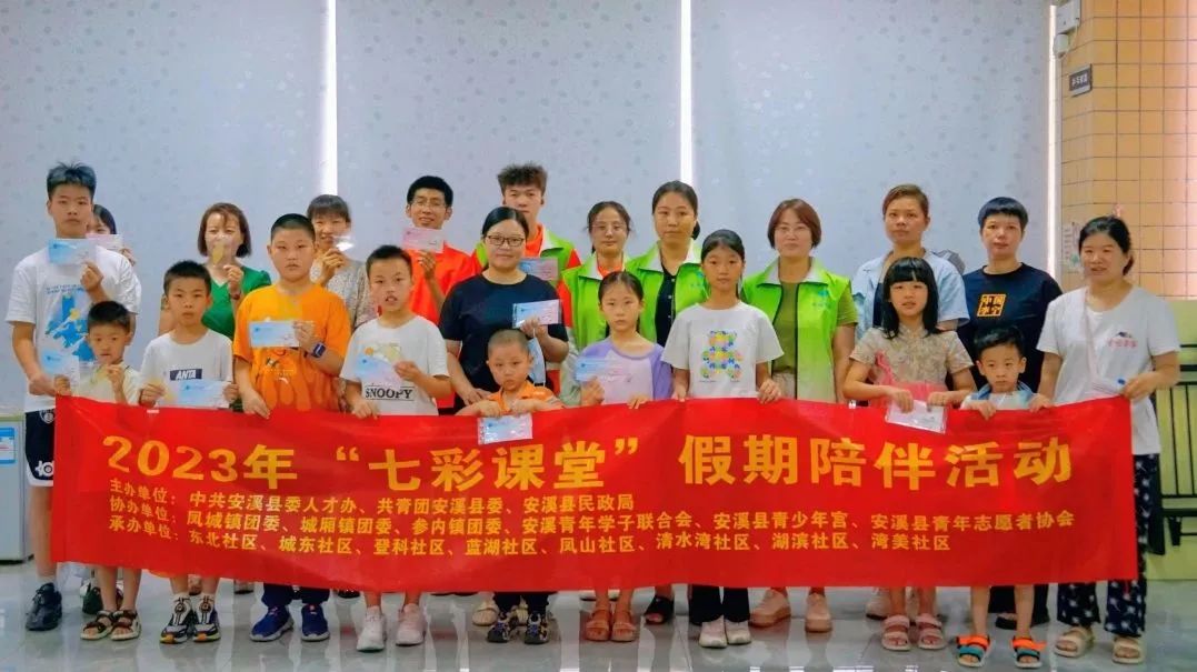 7月9日,实践队队员们在安溪县湖滨社区顺利开展“七彩课堂”陪伴活动。