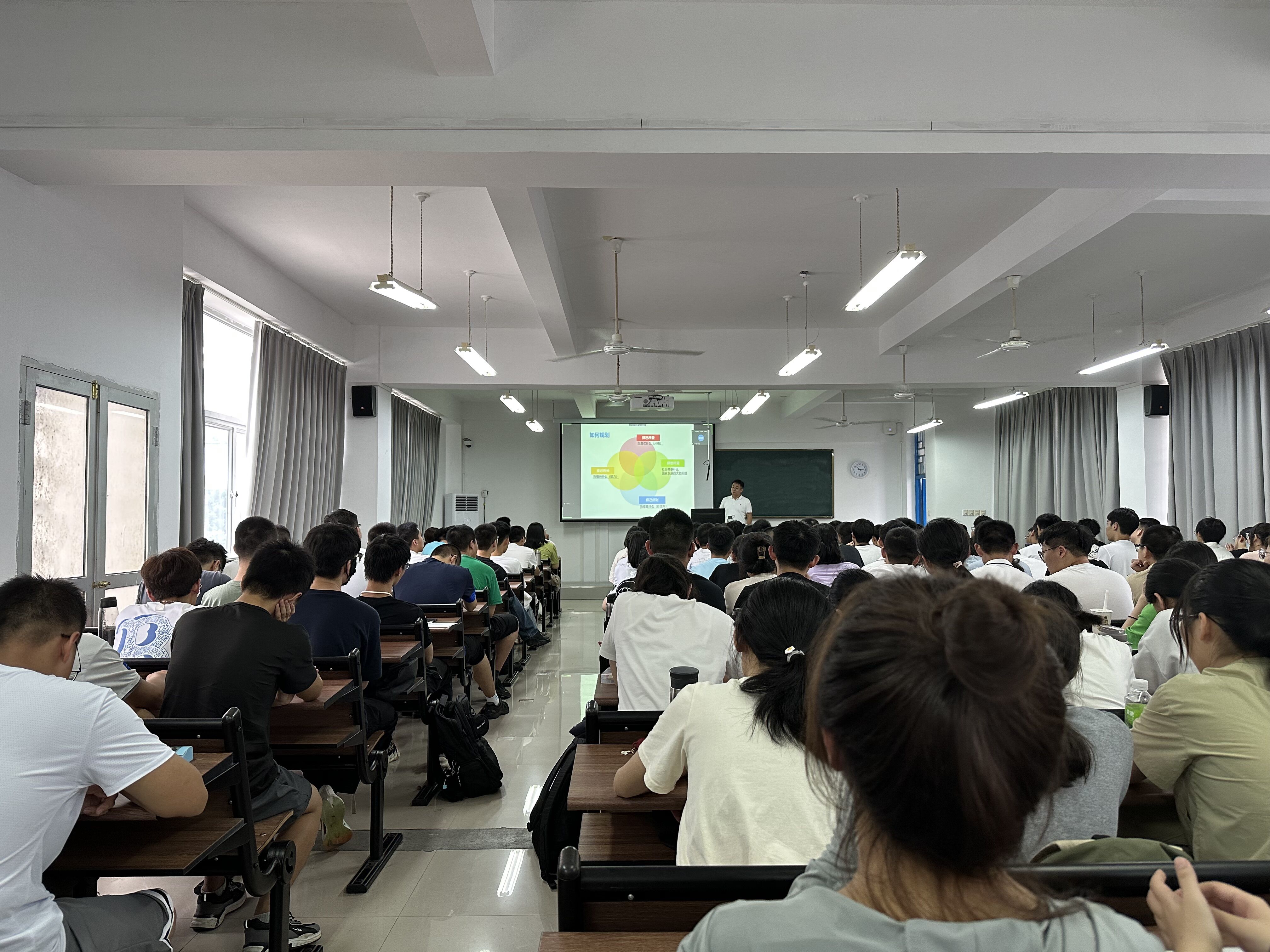 邀请校就业创业中心赵燕松主任为2023级新生作职业生涯规划讲座。全体本科生新生在铜盘校区线下参与,研究生新生在旗山校区同步线上观看。