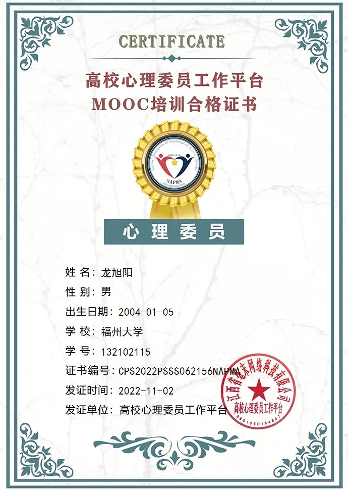 优秀心理发展部的荣誉。在职期间他积极宣传各类心理资源,审核、撰写心理推文14篇,创办木瓜视频