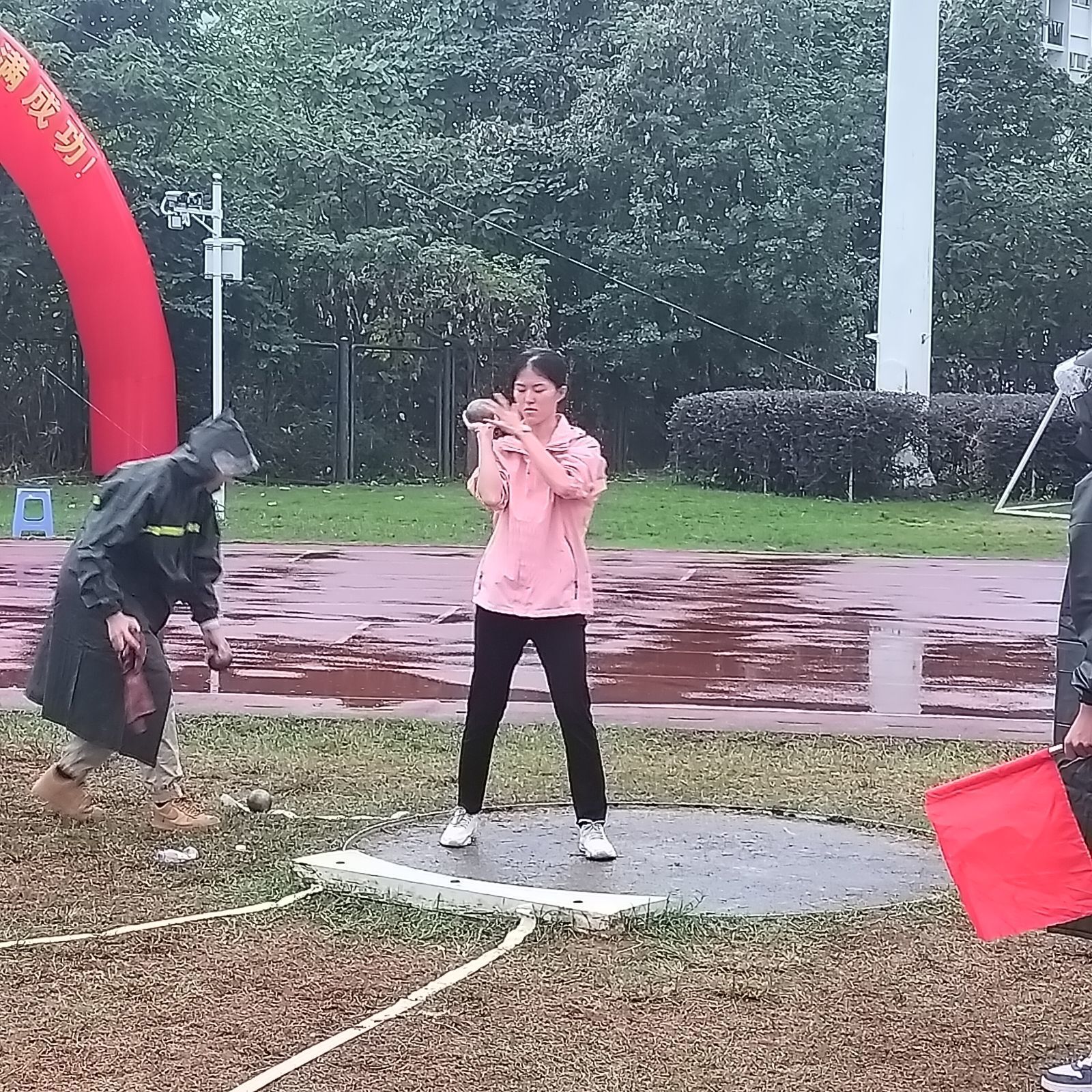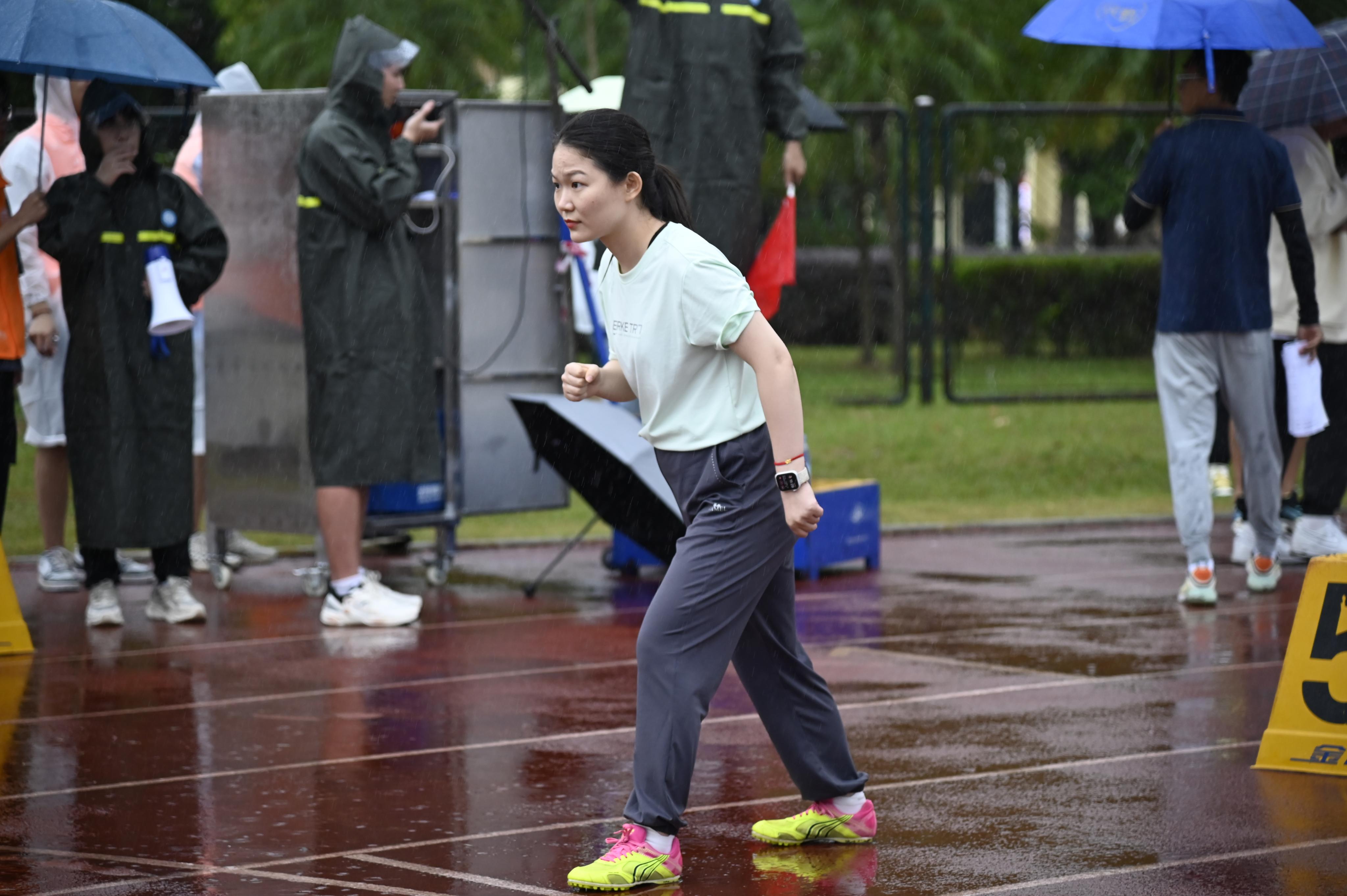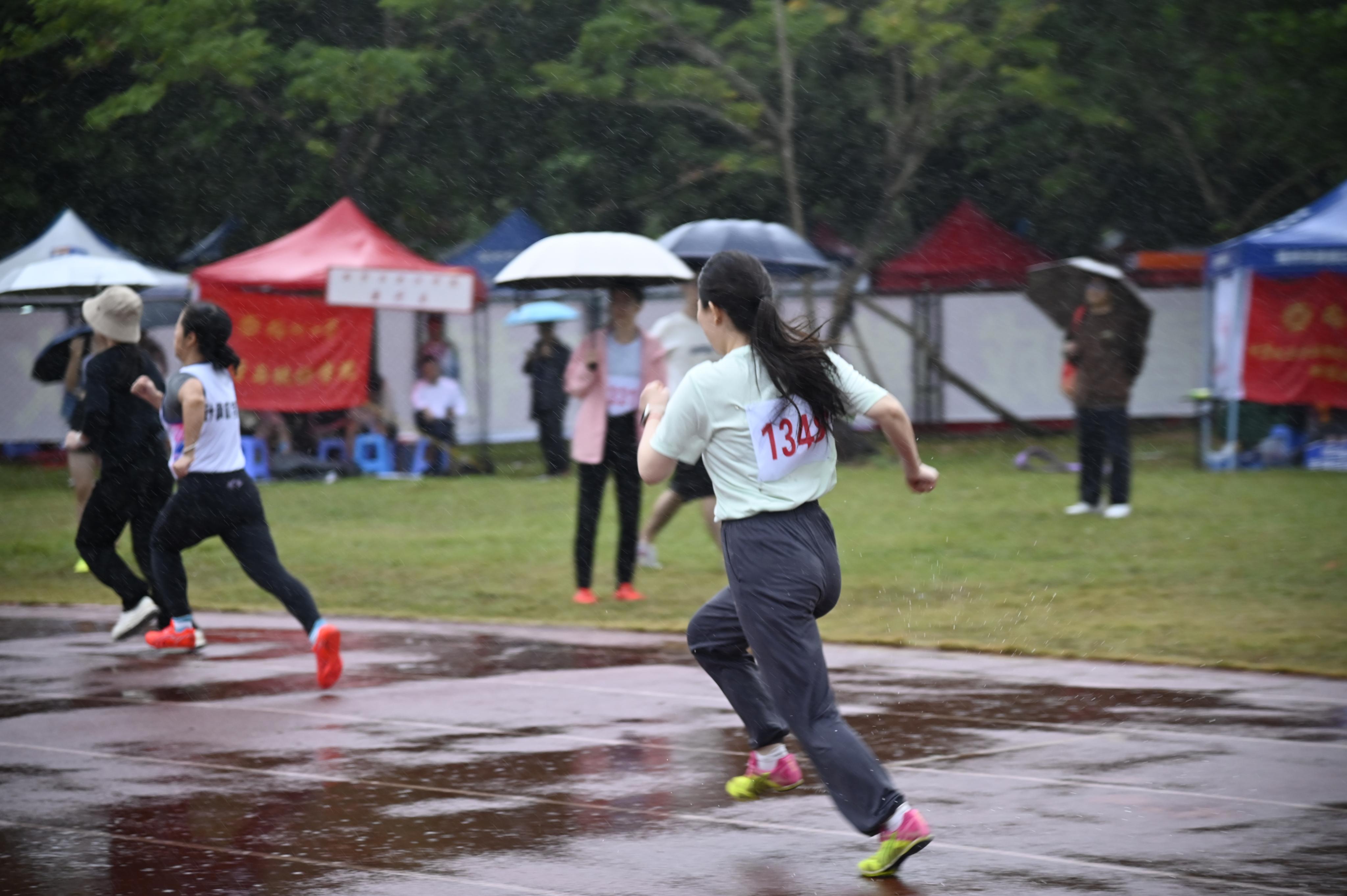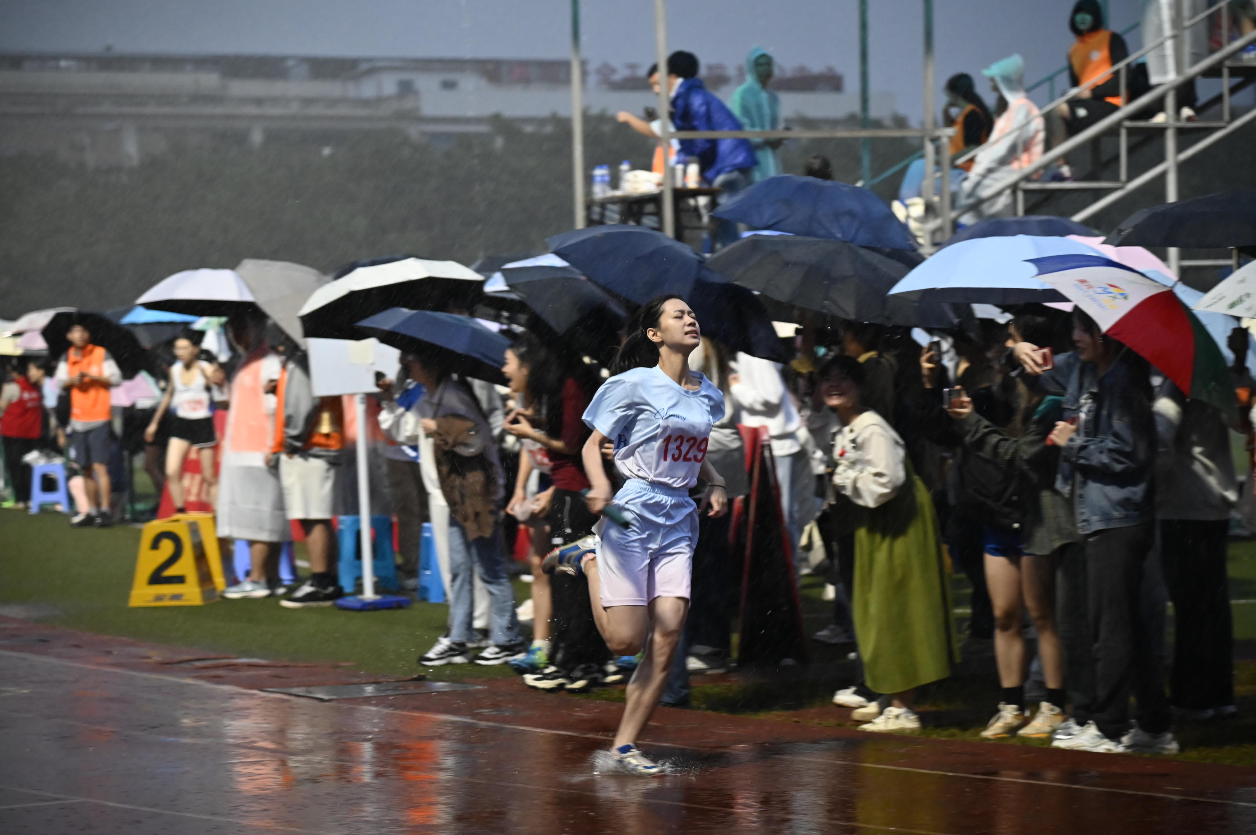 赛后为运动健儿们递上一把伞