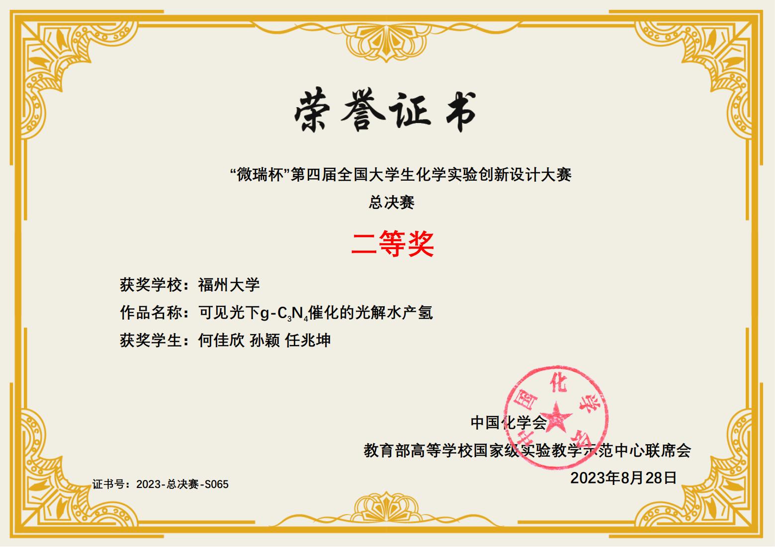 何佳欣 获“微瑞杯”第四届全国大学生化学实验创新设计大赛国家级二等奖