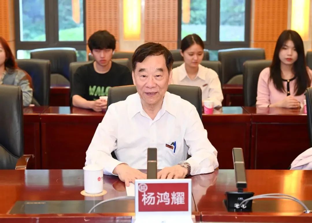 杨鸿耀校友在致辞中发表了充满深情的讲话,他动情地感谢母校的精心哺育,感谢曾经的师长用辛勤的汗水与智慧灌溉了那一辈的学子,让他们学有所成,有能力为社会为国家贡献一份力量。在寄语青年学子时,常居香港且有着深厚家国情怀的杨鸿耀校友曾一度哽咽,他说,有国才有家。国家的繁荣富强,是我们每一个公民能够有尊严地幸福生活的基础。面对日益严峻的国际环境与形势,学弟学妹们一定要清醒地认识到国强民才安的真理,他希望学子们要弘扬爱国主义精神,做坚定的爱国者,珍惜当下的幸福,在大学里认真求学,奋发图强,争取早日成为祖国栋梁之才,为国家发展贡献力量,同时也要学会饮水思源,待羽翼丰满后,也能回馈社会、回馈母校,赓续大爱教育,传承乐善精神,让薪火永相传。