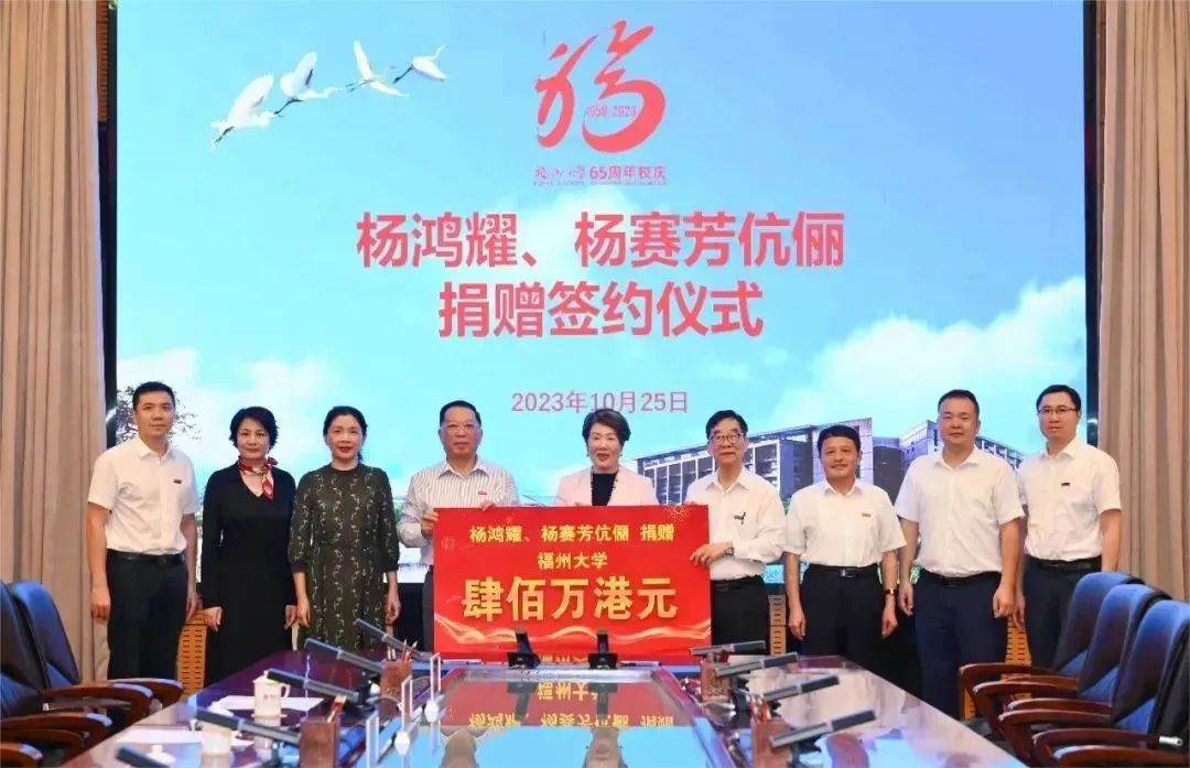 10月25日下午,化学化工校友杨鸿耀先生及其夫人杨赛芳女士向学校捐赠400万港币支持学校教育事业发展。捐赠签约仪式在旗山校区行政南楼举行,校党委书记陈国龙出席捐赠仪式。捐赠仪式由校党委副书记张星主持。