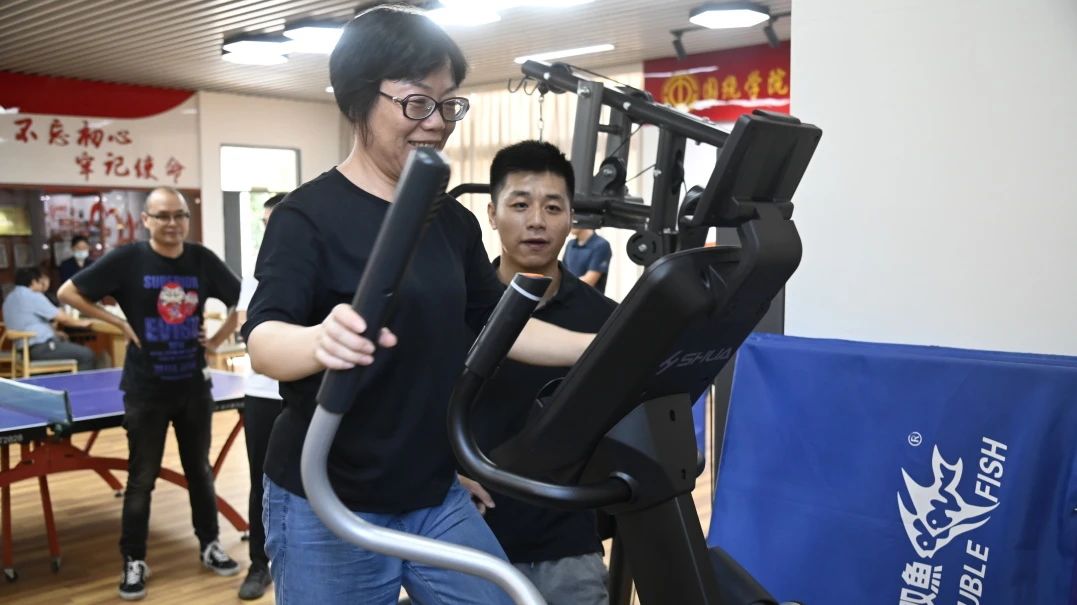 未尽兴的热情,挥洒的汗水,在教工之家中大家拿出最高昂的状态,在不同类型的运动中进行锻炼。跑步机、乒乓球、室内单车等等,多种多样的健身类型,但相同的是都热爱运动的心。在自主锻炼时,教职工们亲自体验了多种全新设备。大家用汗水诠释生命在于运动,用行动为健康生活汇聚力量,绽放更美的光彩。