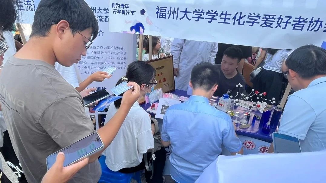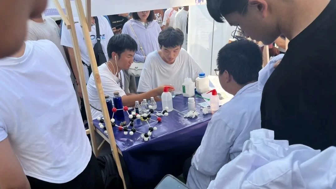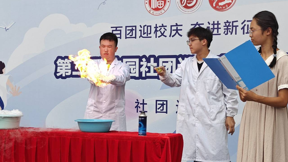 每年开学的百团纳新,是各个社团展现社团风采,更是表现社团魅力的时刻,百团纳新化爱篇也在欢声笑语中圆满结束。在台上,我们表演化学实验,展现化学风采,在台下,我们手把手带领同学体验趣味实验,让同学们亲身感受化学的魅力。活动不仅火爆了现场的气氛,也为我们社团带来了新鲜的血液。