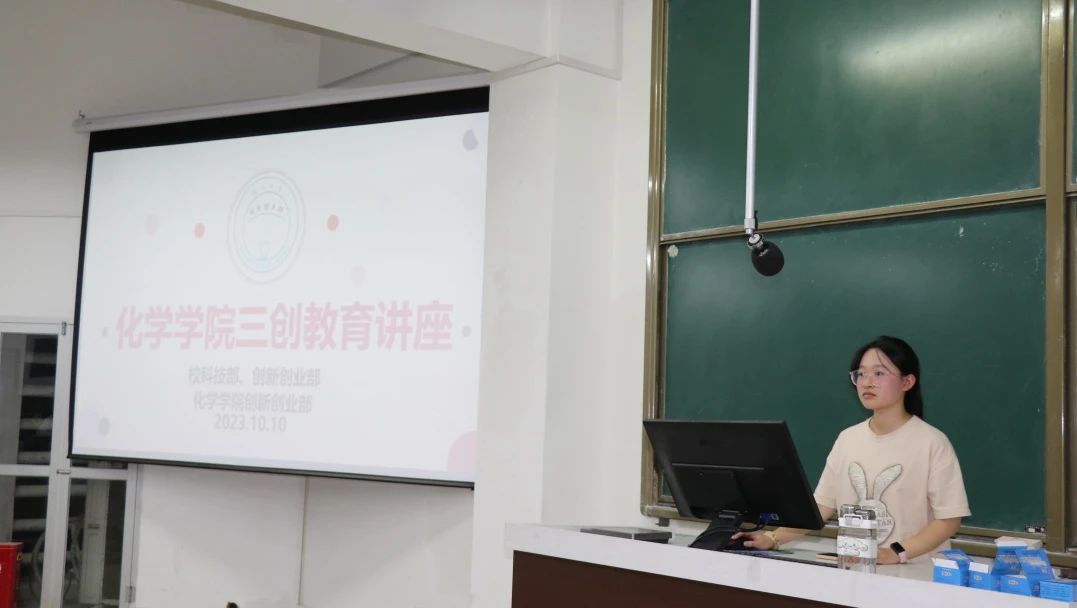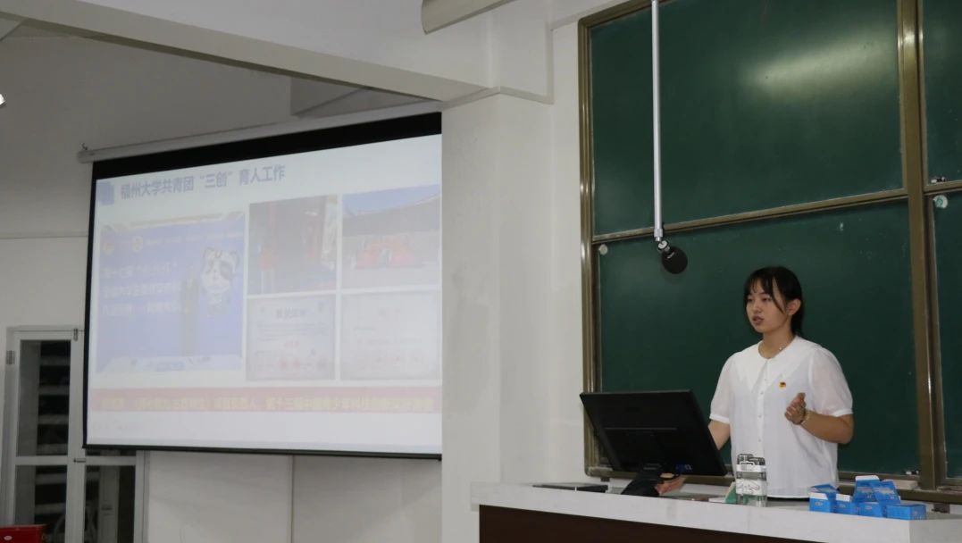 首先,校团委科创部学生骨干尤晓蕊以当前时代背景为引,带大家解读了“创新,创业,创造”的深刻内涵,并给大家普及了“挑战杯”大赛的背景、备赛关键要点、赛事区别等。同时也分享了来自一些优秀项目团队学长学姐传授的“大挑”参赛经验,为新生参与到挑战杯等赛事打破信息差,传授更多的参赛经验,增强学生“三创”意识。