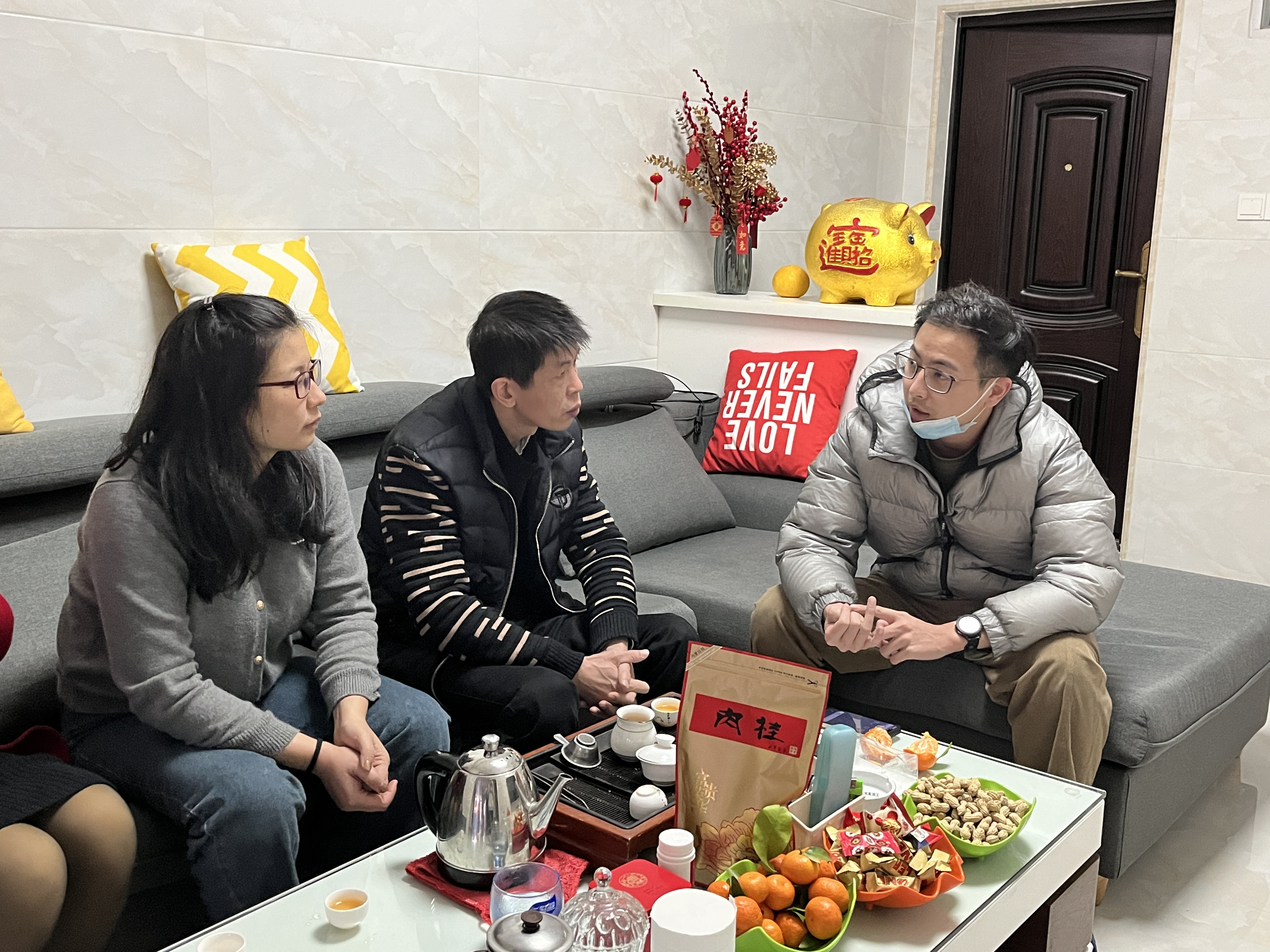 本科生辅导员陈日懿老师与学生的亲朋好友们愉快座谈,他详细分享了学生在校期间成绩情况、学生干部担任情况、志愿服务情况等,并代表学校送上新春的祝福和礼物。家长纷纷表示感谢福大提供的平台和对孩子的关心关爱,之后将一起努力,家校共育,助力学生成长成才。