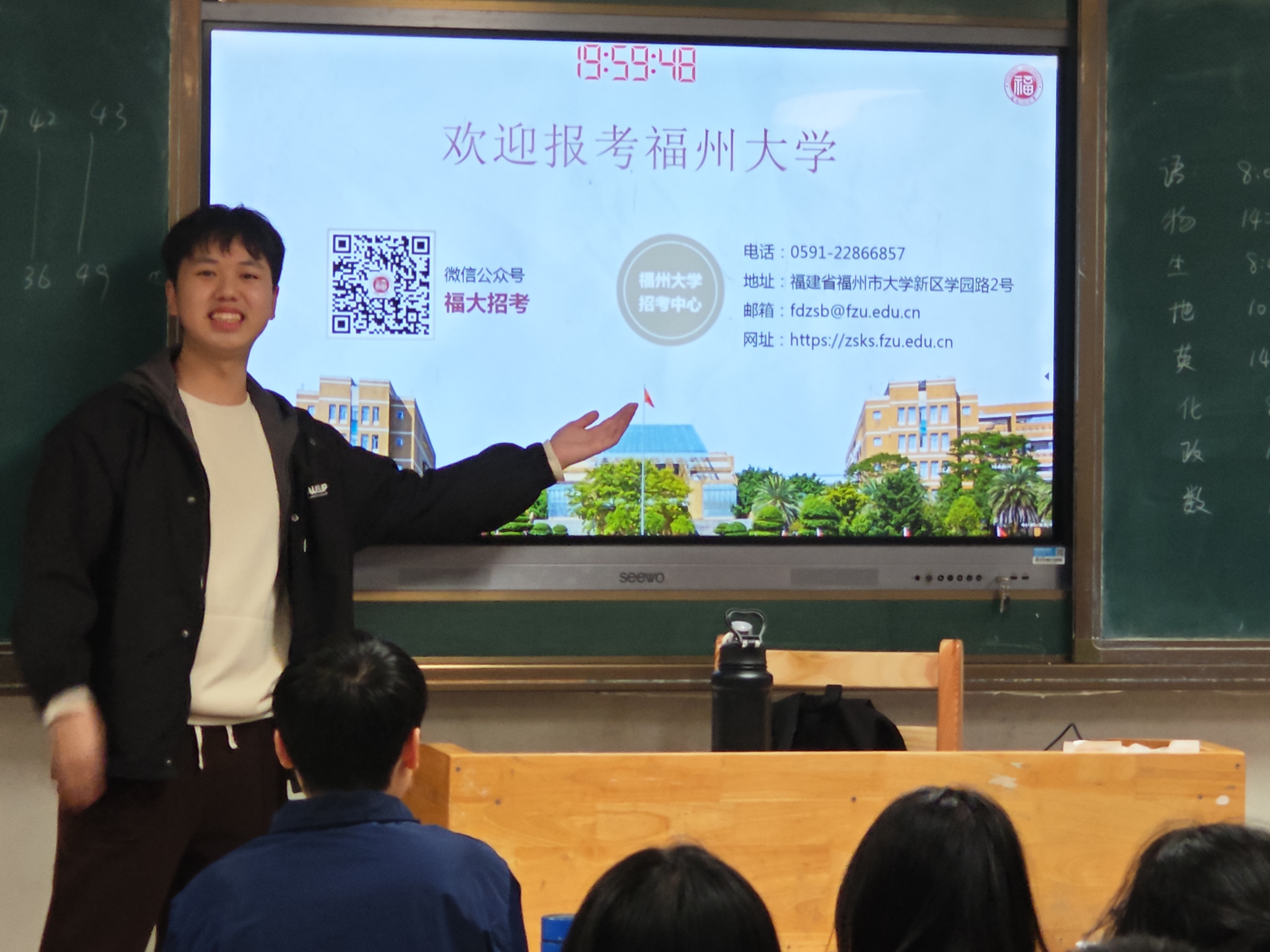 饮水思源,情系母校。为充分展示福大风采,加深广大高中学子对福大深厚历史底蕴和卓越的教育理念的了解,学院嘉锡青年主动请缨,利用寒假返乡机会,回到自己高中母校开展“我为福大代言”宣讲活动。