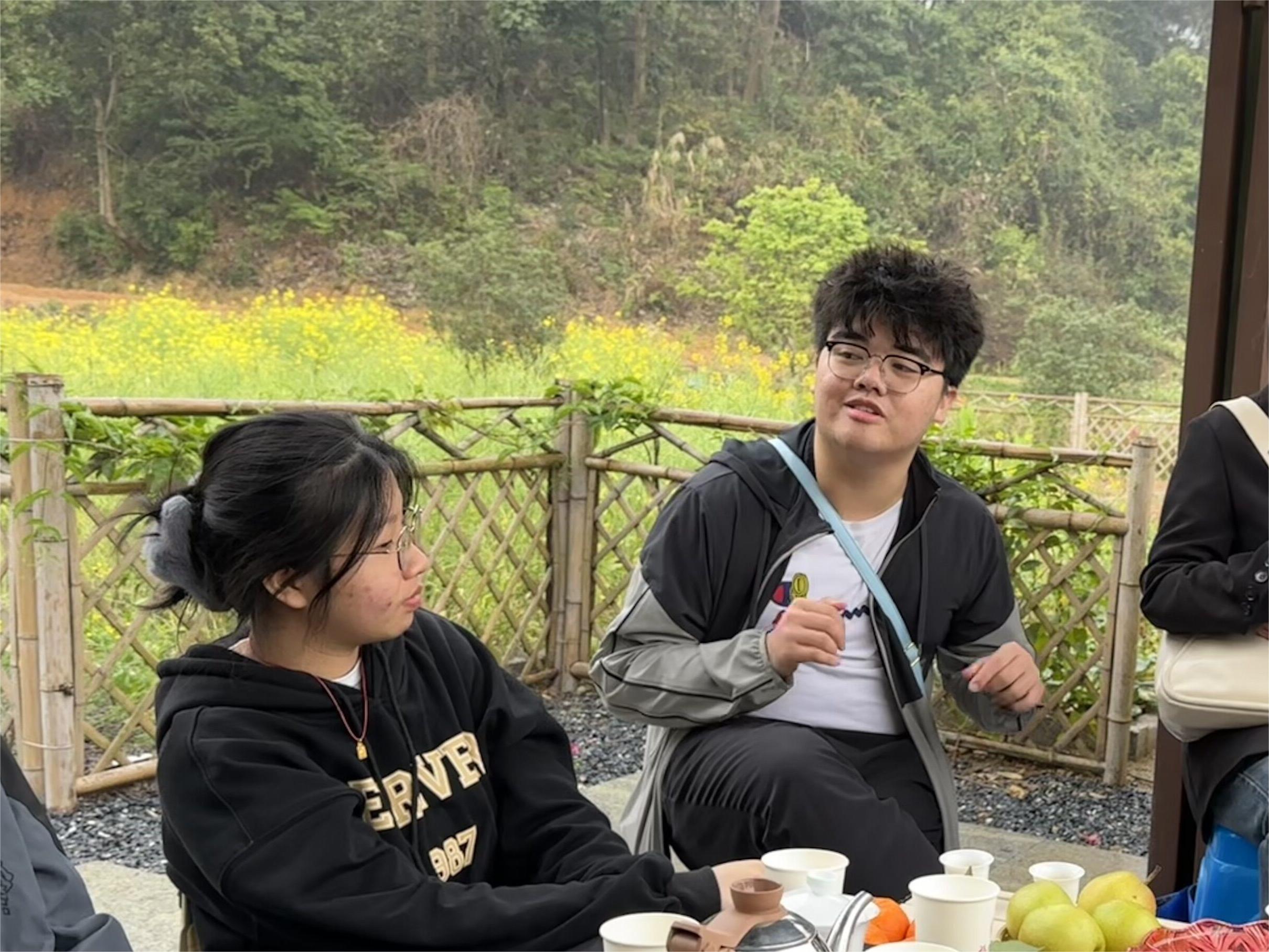 细雨微风,品茗畅谈。在大家的精彩分享中,我了解到更多的民族文化以及各自的家乡特色。畅谈过后,我们在纸上写下对未来的展望,愿每一步都能奔走在自己的热爱里。望着周围的金黄,我想起油菜花的花语:无惧困难,积极向上。希望我们怀揣希望,奋勇向前,创造属于嘉锡青年的青春佳话。
