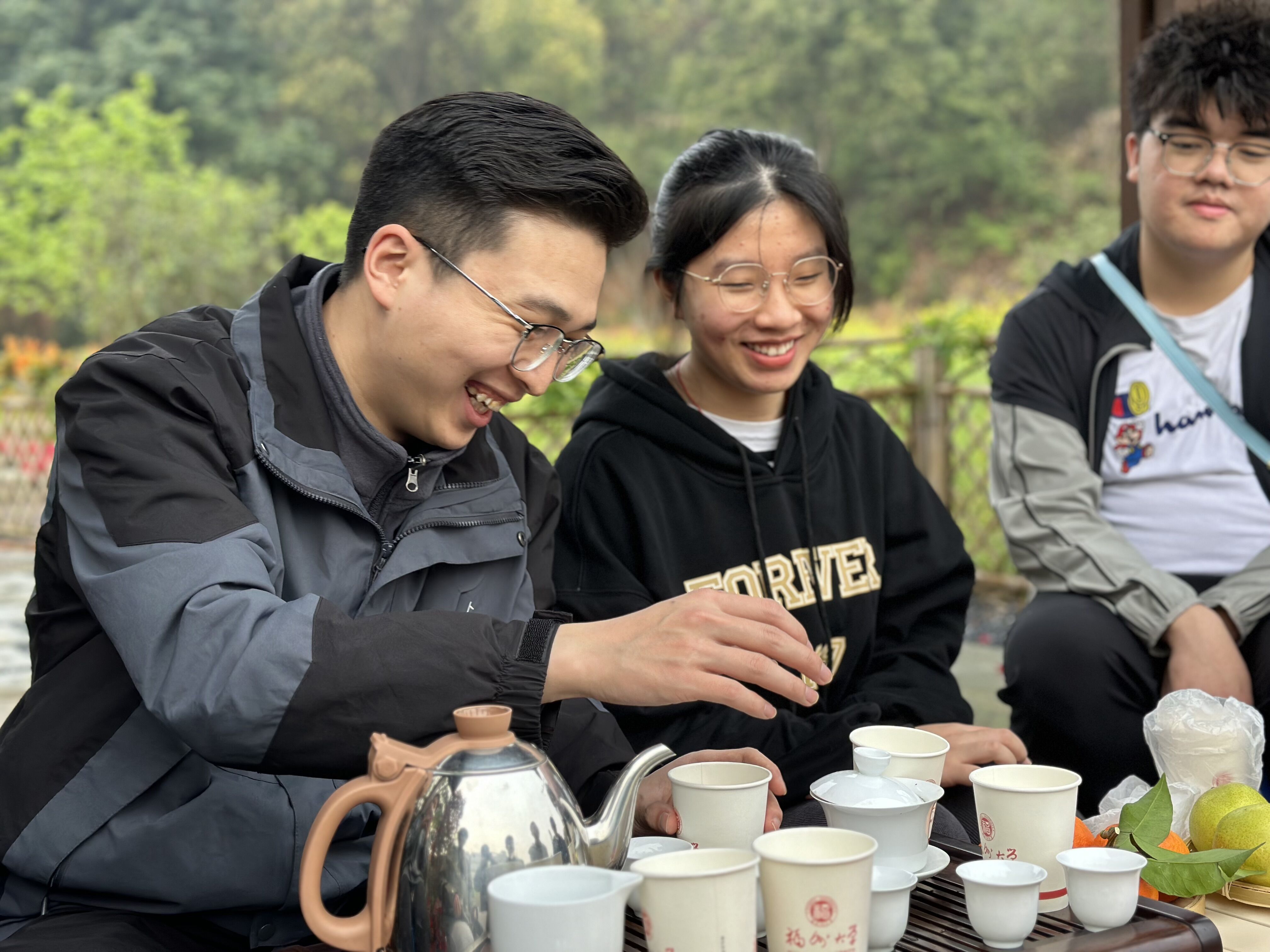 氤氲的香气,构筑起两岸各族嘉锡青年的诗和远方,同学们围绕着学业、生活、职业规划等方面展开交流。“我来自台湾,很开心能同大家一起在福大求学,未来希望继续留在大陆发展”“闽宁合作,山海情深。我来自宁夏,各族人民手足相亲、守望相助的团结故事深深感动着我,希望自己未来学有所成后回到家乡,用青春力量为家乡发展添砖加瓦”。不同民族、不同地区的同学有着不同的成长经历与梦想,却有着同样美好的憧憬与期待。