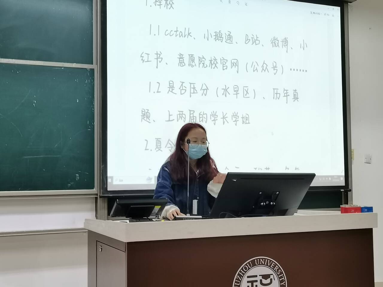 活动最后,兼职辅导员何秀琴老师结合自身经历与工作经验,勉励有考研目标的嘉锡青年抓好考研这次机会,认真备考,并为大家送上了“一战成硕”的美好祝福。