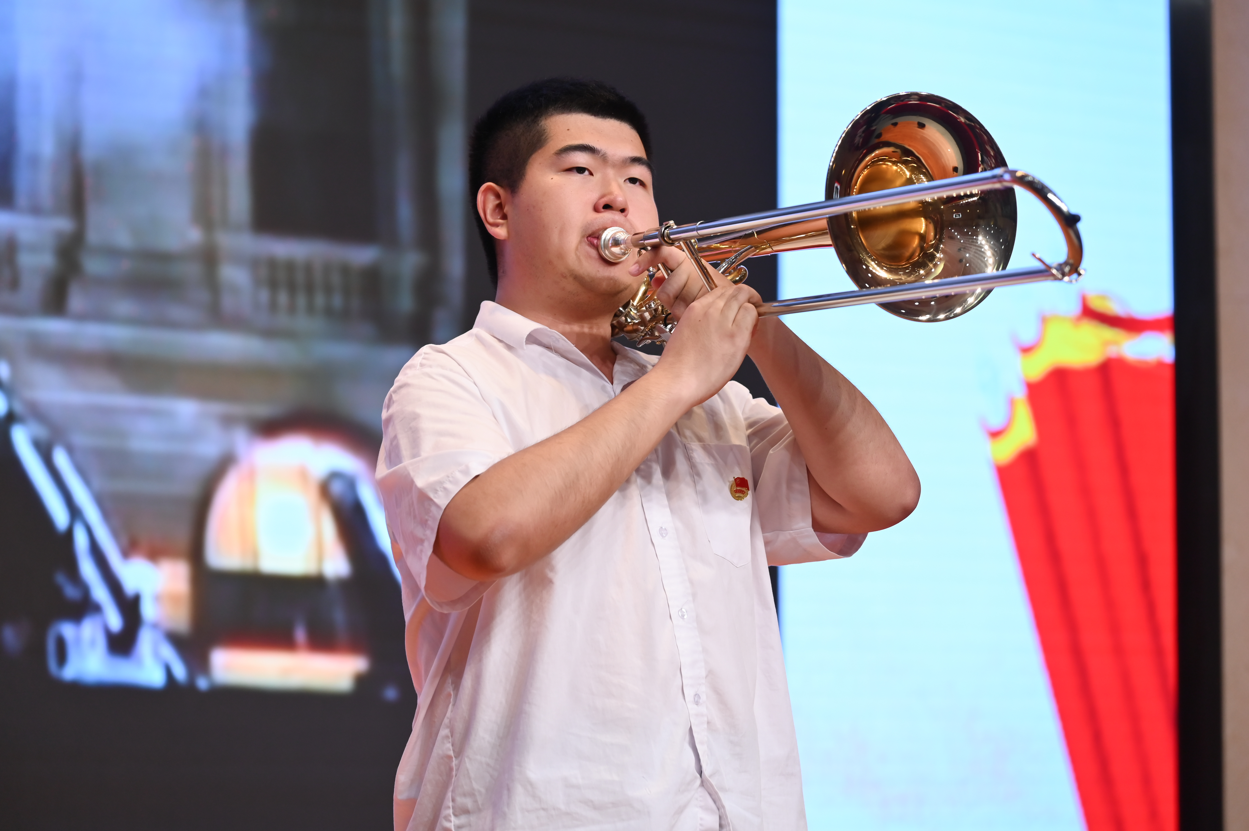诗词朗诵、长号独奏...各团支部的舞台表演精彩纷呈,嘹亮的朗读声表达着对祖国的热爱、对青春的期待,让我们真切地感受到了嘉锡青年们的昂扬激情和实现“强国有我”的满腔热血,同时也展现了各团支部强大的凝聚力和组织力。