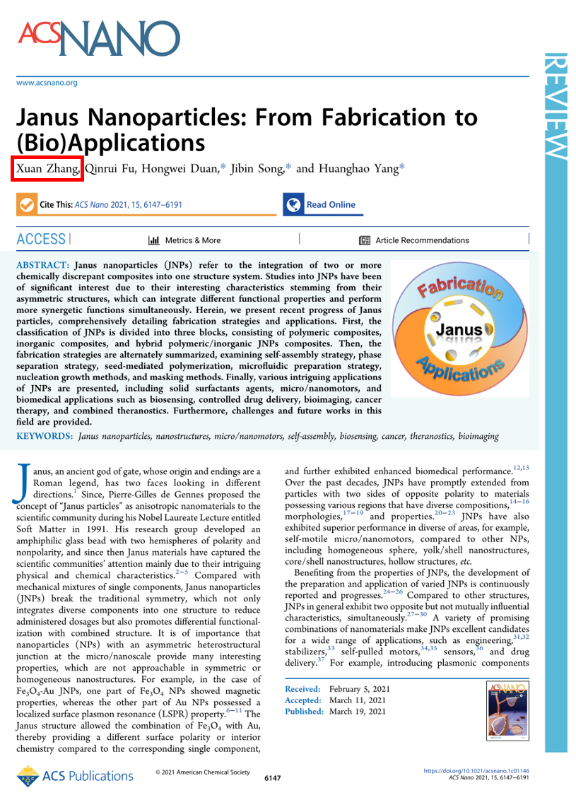 博士新生特等、硕士中期二等、硕士新生一等校级以上奖学金4次。以第一作者或共同一作身份在Angewandte Chemie International Edition、Nano Letters、ACS Nano等SCI高水平期刊发表论文9篇,申请发明专利2项。从临床需求出发,学以致用,作为项目负责人带领团队投身国产医疗器械研发,项目荣获双创类赛事校级以上奖项6项(其中“互联网+”国赛铜奖1项)。获评木瓜视频