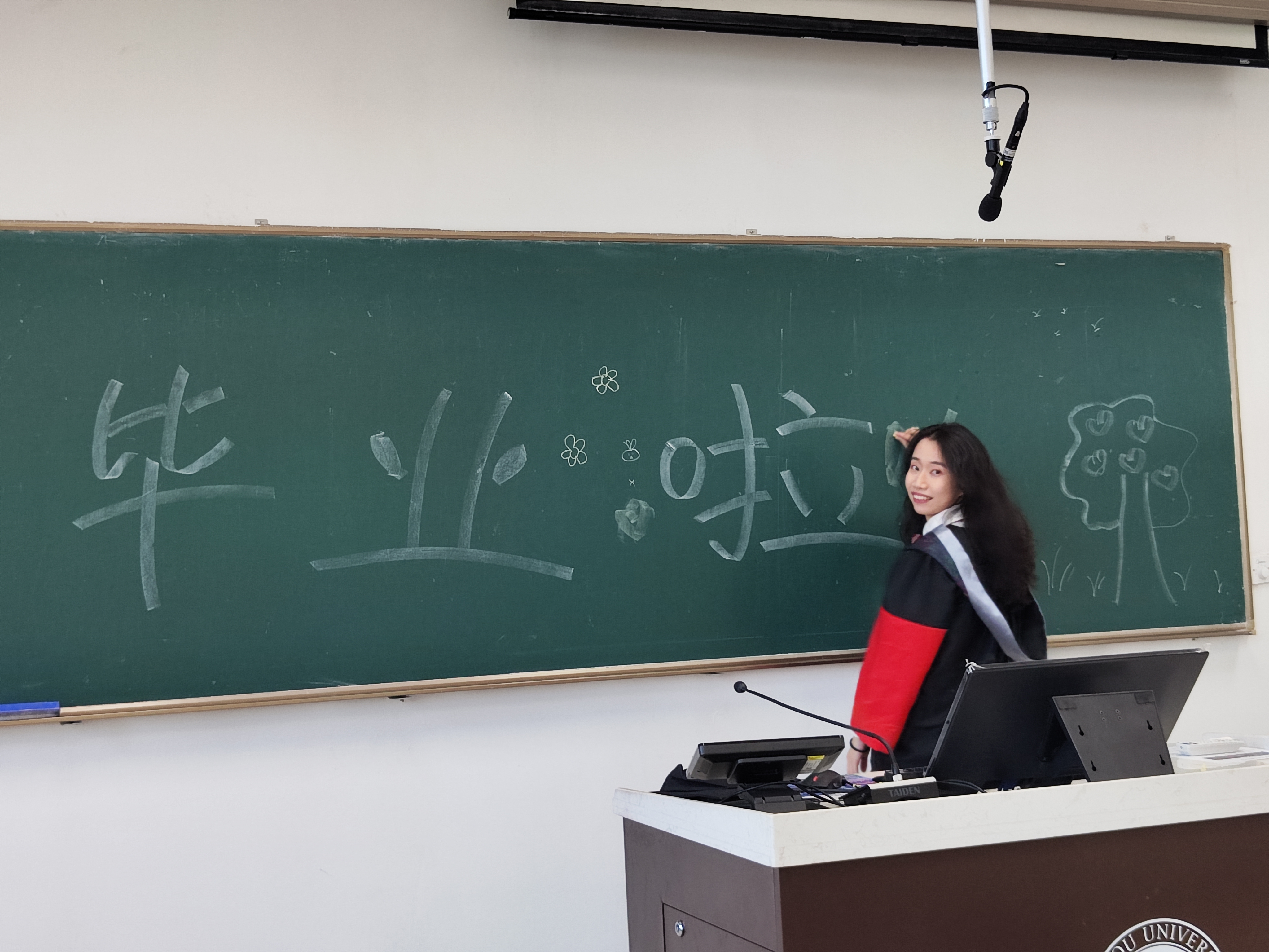 张璇:读研这一趟旅程的意义,我将它归纳为在追求热爱中不断成长。在研究生求学期间,我犹记得阳光楼里纳米探针合成、仪器测试、数据处理的一个个平淡无奇的日夜,也感受过无数次因为实验失败而产生的痛苦和迷惘。但那些无法把你打倒的,终将使你更加强大。作为一名福大化学人,筚路蓝缕亦无畏,材料制备失败我就查阅相关文献,调节实验条件,批量尝试系列方案;和导师同门沟通交流,找寻失败的原因并挖掘潜在的成功条件,坚持就是胜利,也终迎来了成功的欢呼。