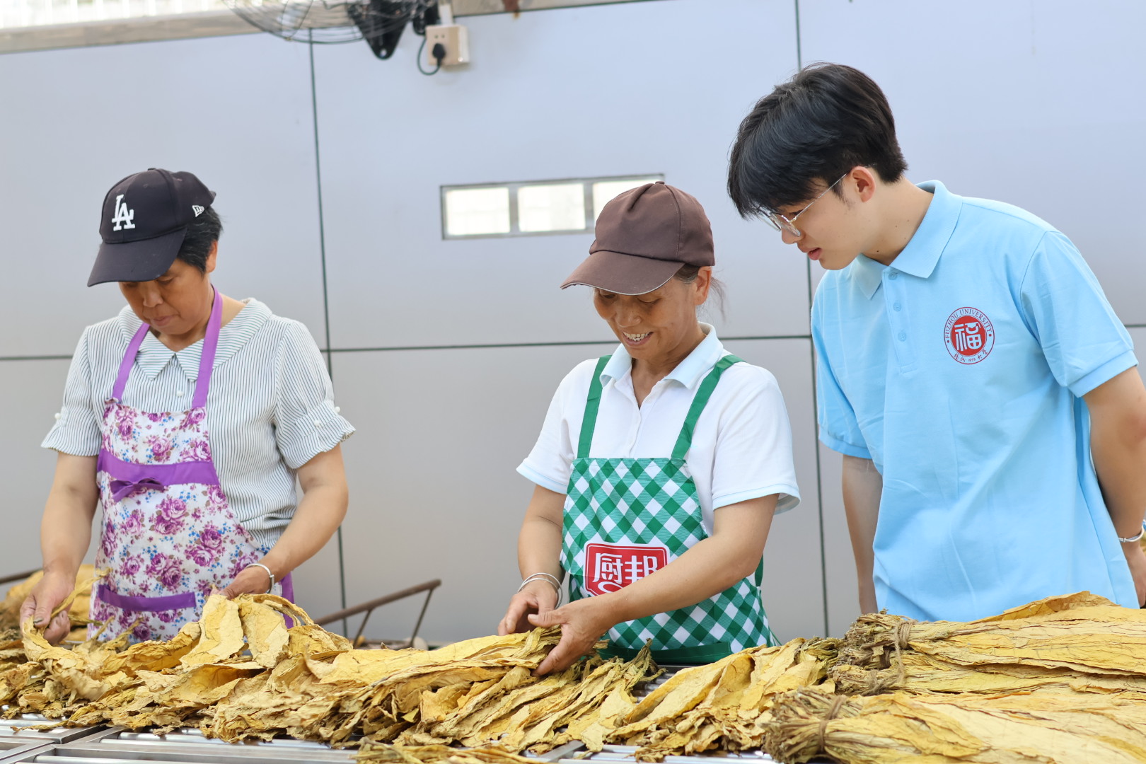 “人勤方惜春来早,烟农竞相备育苗”。在与烟农的交谈当中,成员们仿佛看到了农忙时节家家户户忙碌而幸福的光景,体会到了烟草作为“致富草”在当地农户心中的地位。之后实践队成员进入生产车间,近距离观看烟草处理过程。他们利用专业知识开展生产技术的研究创新与科普推广工作,对当地烟草种植业发展现状进行分析并提出建议,为当地乡村产业振兴注入青春活力。