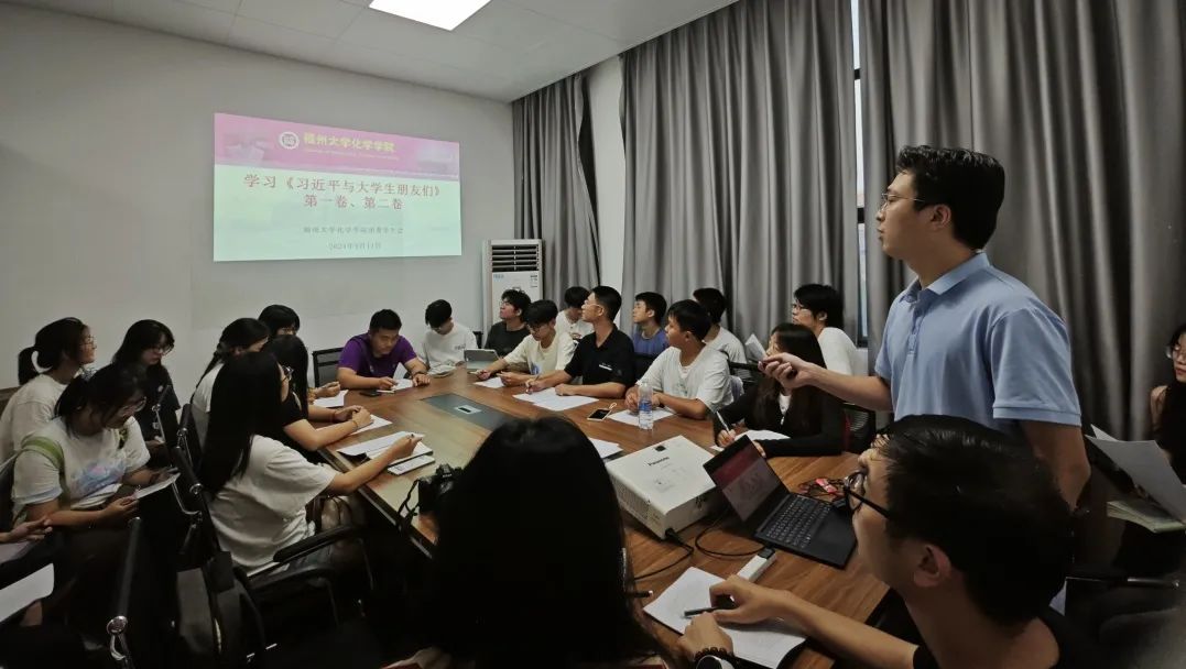 团委学生会于旗山校区开展《习近平与大学生朋友们》第一卷、第二卷专题读书交流会,辅导员李星星老师领学,学院团委书记刘旭莹老师、各年级辅导员及团委、学生会全体成员参会。
