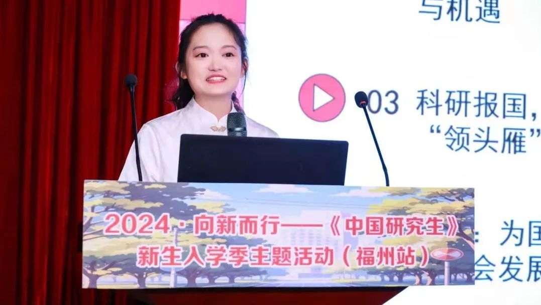 刘梦丽在“2024·向新而行——《中国研究生》新生入学季主题活动(福州站)”上作专题分享