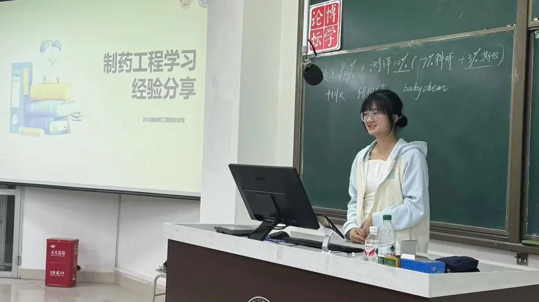 林梦晗同学主要就制药工程专业课程学习展开分享。她建议同学们通过课前预习,课后复习,绘制概念图和流程图等方式来搭建知识框架,以便更好地理解和记忆知识点。大一是适应与探索的关键时期,学会合理分配时间与精力至关重要。她鼓励同学们在平时多与学长学姐们交流,打破信息差,行稳致远,久久为功。