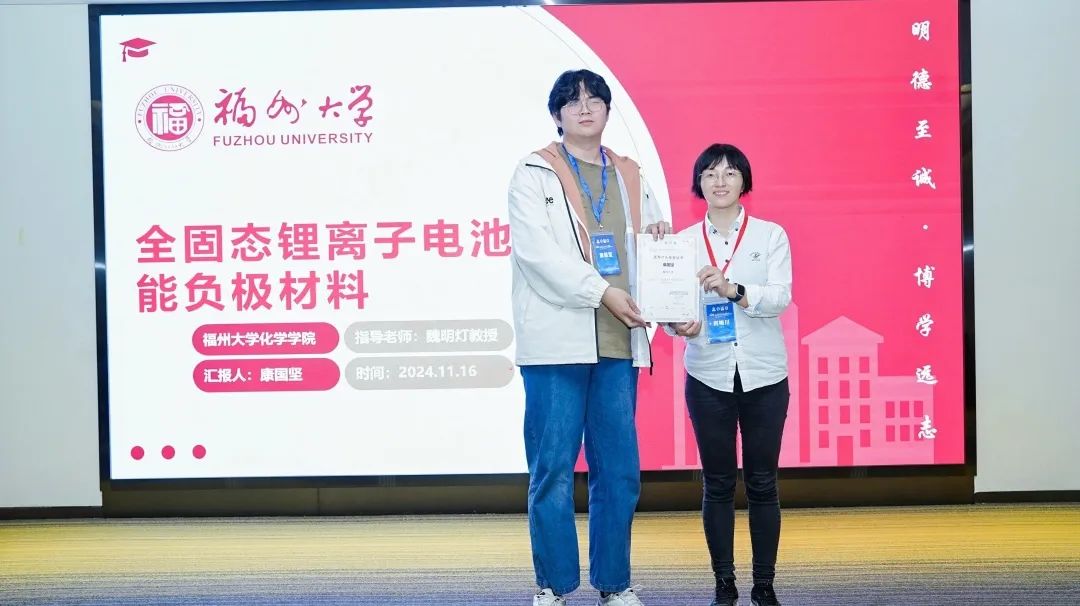 康国坚:本次学术会议我围绕全固态锂离子电池高性能负极材料,从负极材料的制备,电池装配,电池性能等方面介绍了自己的工作,并介绍了固态锂离子电池的优点和应用场景,并获得了优秀口头汇报证书。我通过这次活动和来自各高校的同学们进行交流,获得了新的科研思路,也明晰了自身的不足,未来我将继续扎根能源化学领域,以勤奋和智慧为翼,以创新和实践为舵,勇敢地航行在科研的海洋中,为实现国家的科技梦想和民族的繁荣昌盛贡献自己的微薄力量。