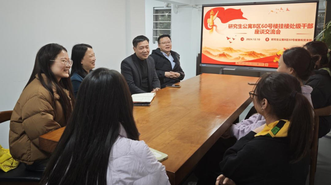 为贯彻“以生为本”的教育理念,切实了解学生需求,进一步提升学生在校学习、生活的满意度、舒适度,12月10日下午,研究生公寓B区60号楼兼合党支部于“一站式”健身活动共享空间党团活动室开展挂联处级干部座谈交流会。60号楼总指导员、招生考试中心俞晓菁主任,60号楼副总指导员、招生考试中心钟光声副主任,木瓜视频