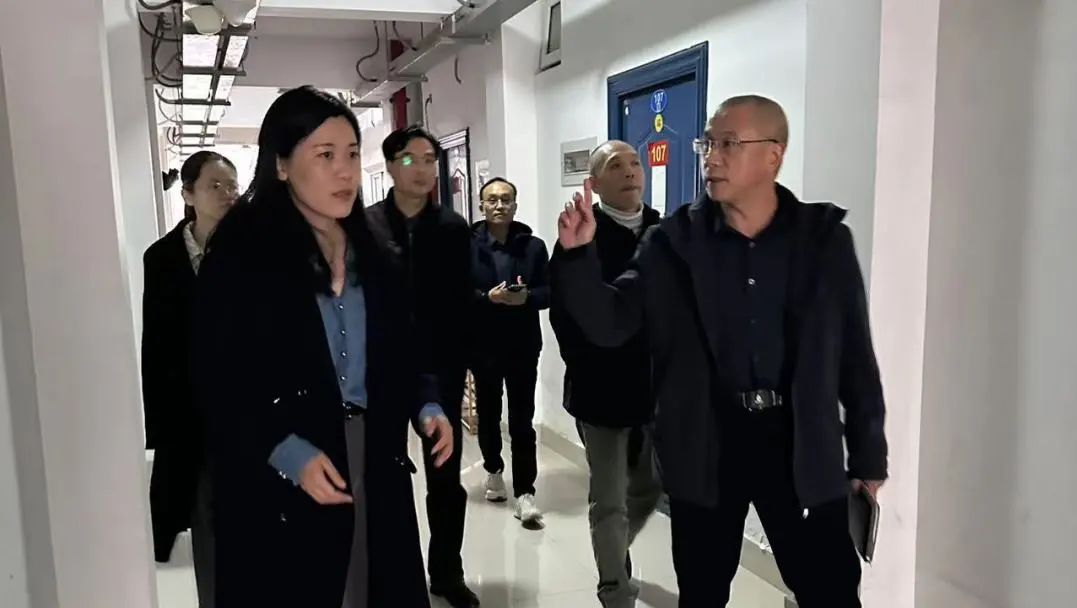 辅导员杨燕端陪同处级领导干部们走访学生宿舍