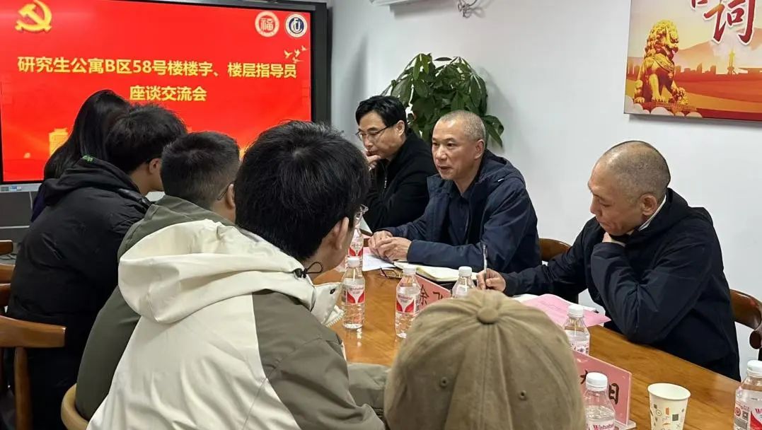 在研究生公寓B区成功举办了61号楼楼宇总指导员、楼层指导员座谈交流会。61号楼楼宇总指导员、国有资产管理处处长兼招标采购中心主任雷石宝处长,楼层指导员、国有资产管理处余飞副处长,楼层指导员、国有资产管理处林勇副处长以及61号楼兼合党支部全体党员参加本次活动。