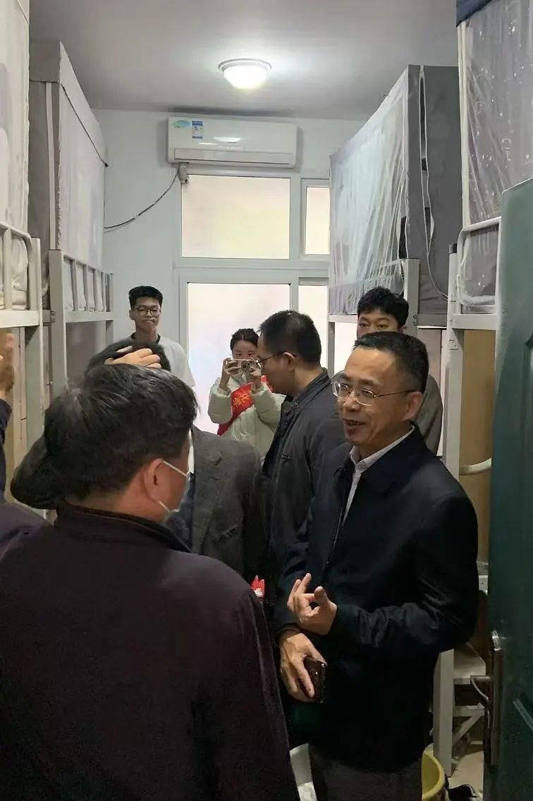 在走访宿舍中,处级领导干部面对面了解了学生的宿舍生活条件、学习情况等。黄剑东院长和曾忠毅书记尤其强调了宿舍安全的重要性,结合实例为同学们普及了公寓违规用电、电动车随意停放等安全问题的危害。