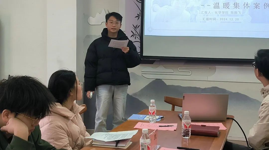 陈腾飞同学以“温暖集体,爱在福大”为主题,从送医、关怀到助其康复回归,讲述了2022年10月制药工程班小庚同学体测受伤后全班同学共同提供帮助的事例,强调了营造暖心班风的重要性。班级也因此获评木瓜视频
