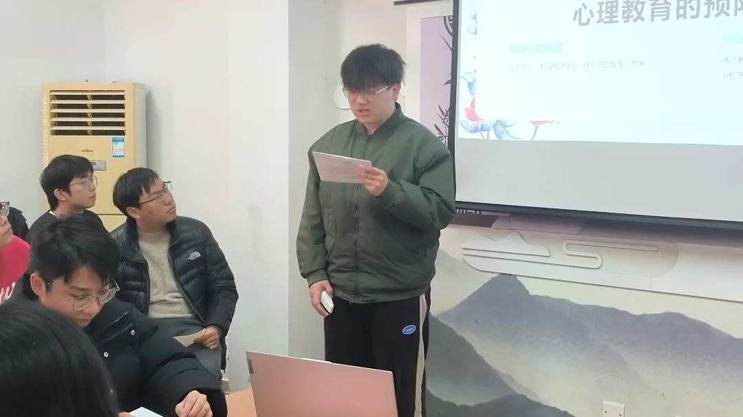 高宇同学的分享则聚焦考前大学生的学习焦虑与心理调试,强调了心理健康教育的重要性。他结合课业、就业、人际等常见困扰,介绍了时间管理、社交、情绪调节等心理调试方法,及学校提供的心理健康教育资源,呼吁同学关注心理健康,助力美好大学时光。