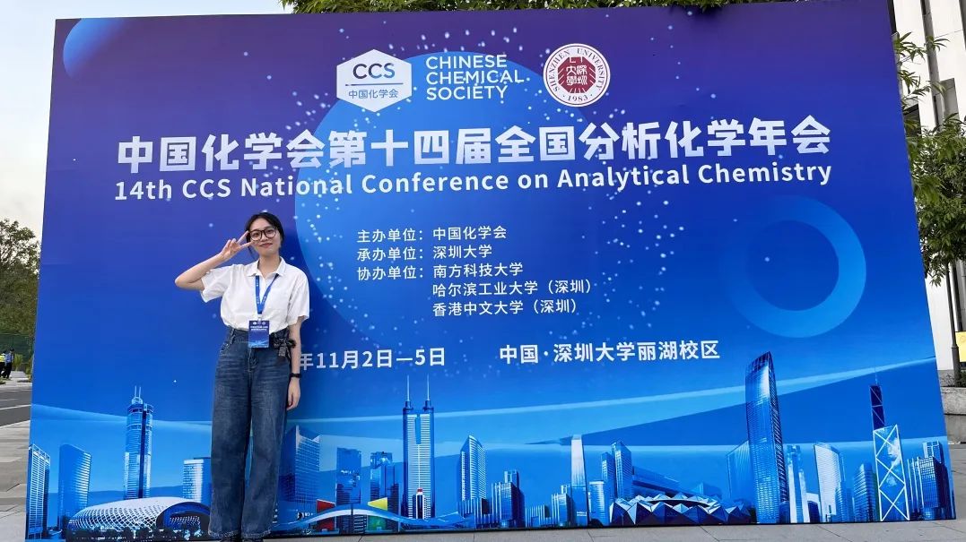 “科研不是短时间高强度的冲刺,而是一场深耕自我的长途跋涉。”她凭借着一股子不服输的韧劲,善思、善学、善发现,为科研尽心尽力。在林振宇老师课题组老师们的指导下,她在科研工作和学习上稳步推进,在中国化学会第十四届全国分析化学年会上进行课题汇报,获得研究生中期优秀学业二等奖学金并成功申请硕博连读,成为分析化学专业2024级博士研究生,围绕重大疾病如肿瘤等相关生物标志物检测进行开展专业性研究,投身于科研强国的事业中。