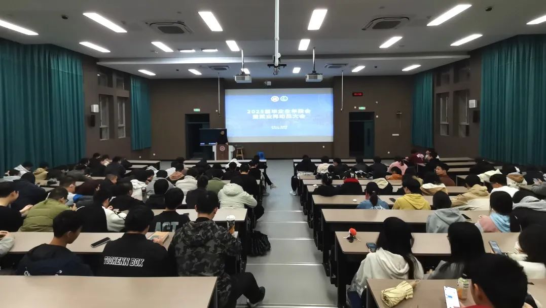 辅导员陈日懿老师、何秀琴老师首先解析当前考研形势,鼓励同学结合初试成绩、目标院校信息和自身发展规划等综合研判,提高升学成功率。随后,他们围绕就业政策、就业途径等方面展开介绍,提醒同学们应认清当前就业形势,主动出击、协同发力,同时要以积极主动的态度应对毕业季的多重任务,科学规划学业与职业发展,圆满度过大学最后一程。