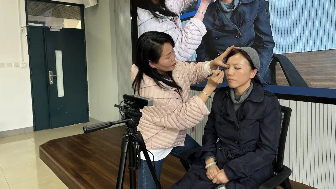 接下来的现场示范环节更是将活动推向了高潮。陈君玉老师现场随机挑选一名教师演示基础妆容的打造过程,在示范过程中,陈老师细致入微地讲解了每一步的操作方法和需要注意的事项,让在场的教师们能够清晰地了解化妆的正确步骤和技巧。台下教师或聚精会神观看,或举起手机录制教学细节。当美目贴结合眼线笔勾勒出放大效果,粉底与腮红精准配合提亮肤色,叠加高光塑造立体骨相,浓眉经眉粉晕染渐显柔美曲线时,现场接连响起惊叹声。