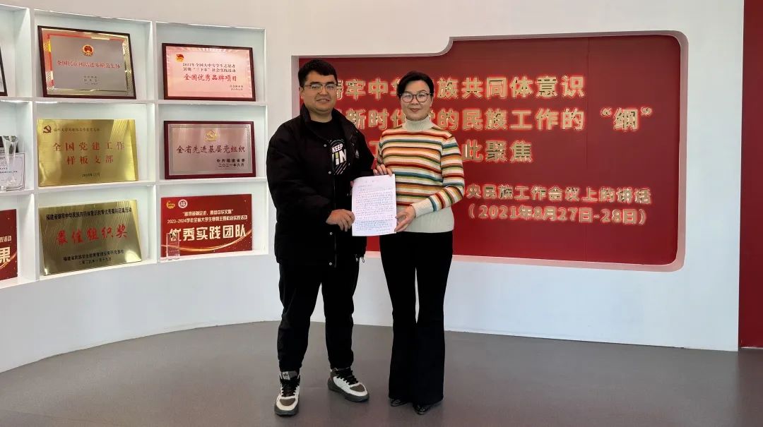 刘敏榕工作室——铸牢中华民族共同体意识之家,与其他少数民族学生共同学习生活,一面脚踏实地在科研路上留下绵延的印记,也一面竭尽力量化为光温暖他人、照亮他人。从研究生入学时的“绿色通道”,到“黄金陵教授奖助学金”、“暖冬慰问”......他十分感谢一路以来学校、学院、“刘敏榕工作室”对他的关心关怀,他说,“学院老师和刘妈妈非常亲切、热情,在我遇到困难的时候给了我很大的鼓励和帮助,让我在学校也感受到了家一般的温暖。”