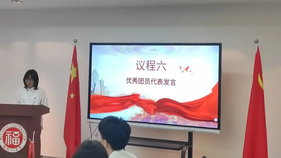2024级本科生廖梓墨同学作为新团员代表发言。他表示,成为一名共青团员不仅是身份的转变,更需以高标准要求自己,在学业、生活、社会服务中积极作为,以实际行动践行“强国有我”的誓言。