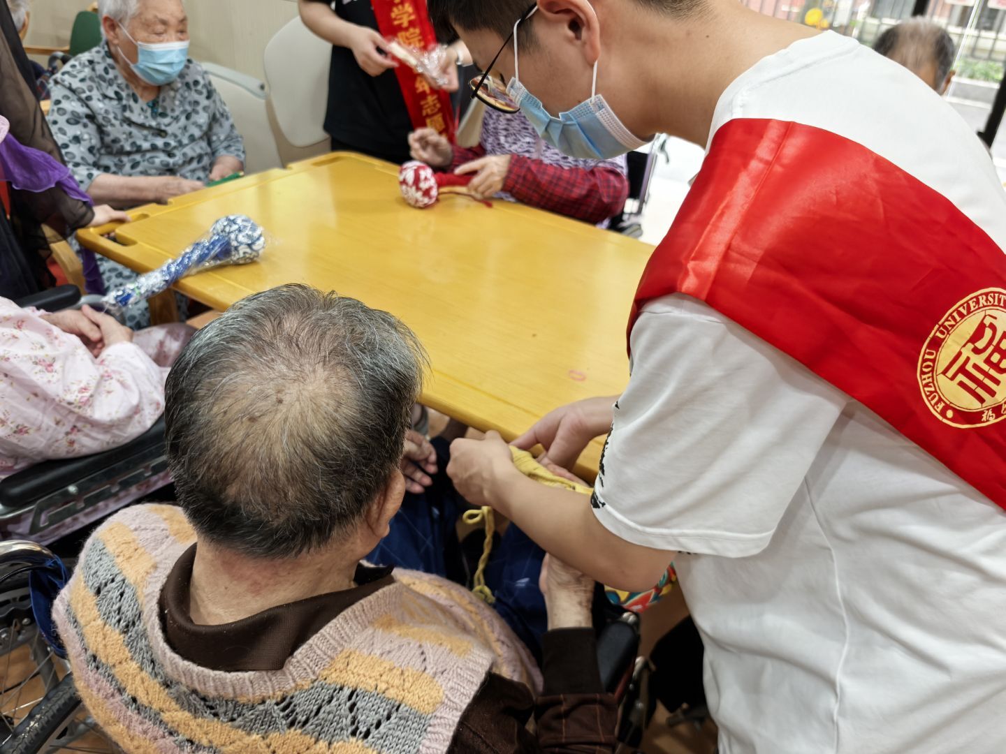 活动临近尾声,长者们紧紧握着志愿者们的手不愿松开。“孩子们,一定要常来看看我们啊!”他们真挚的话语里满是不舍。其中一位奶奶更是将亲手缝制的香囊赠予志愿者,这份饱含心意的礼物让在场同学感动不已。这次活动不仅为长者们带去了欢乐与温暖,更让年轻的志愿者们深刻体会到“老吾老以及人之老”的传统美德,在心灵深处播撒下尊老敬老的种子。