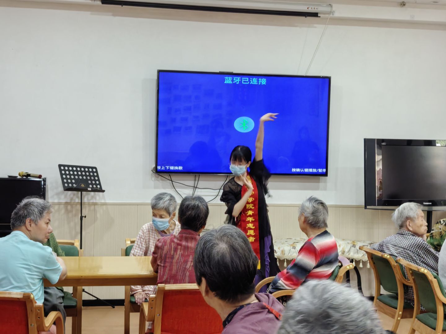在精心布置的活动室内,志愿者们为长者们献上了一场暖心的文艺演出。伴随着欢快的音乐,志愿者们跳起青春洋溢的舞蹈,瞬间点燃了现场氛围。当熟悉的经典旋律响起,不少老人家情不自禁地跟着节奏轻轻哼唱,脸上洋溢着幸福的笑容。演出最后,一首充满活力的歌曲将气氛推向高潮,现场响起阵阵热烈的掌声。