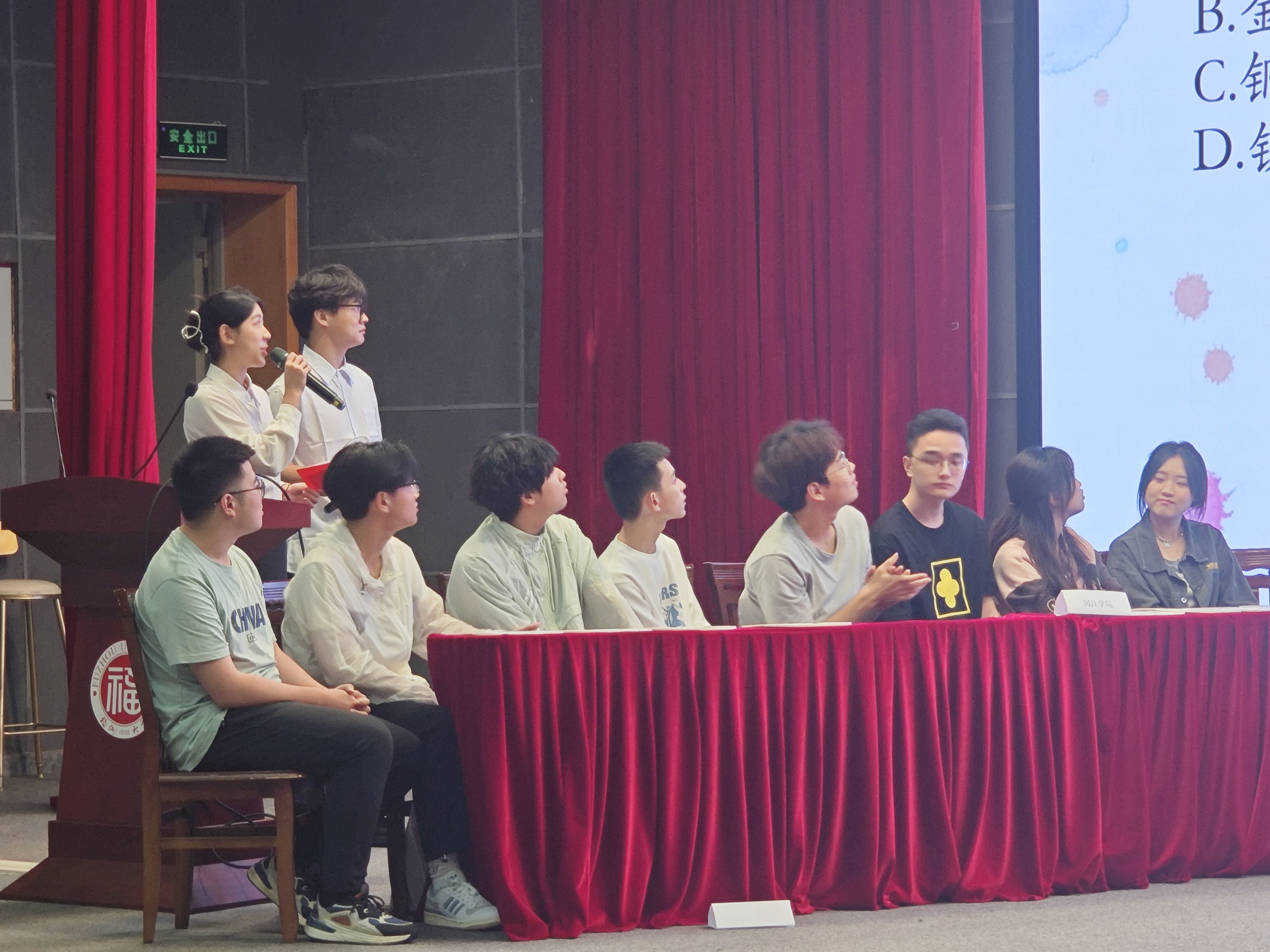 、福建师范大学、福建理工大学和闽江学院等多所高校的优秀学子参与。竞赛分为 “百舸争流” 和 “择木而栖” 两个主要环节。每个环节都紧扣化学学科特色,既检验知识储备,又挑战临场发挥,为观众呈现一场智慧与激情的科学盛宴。